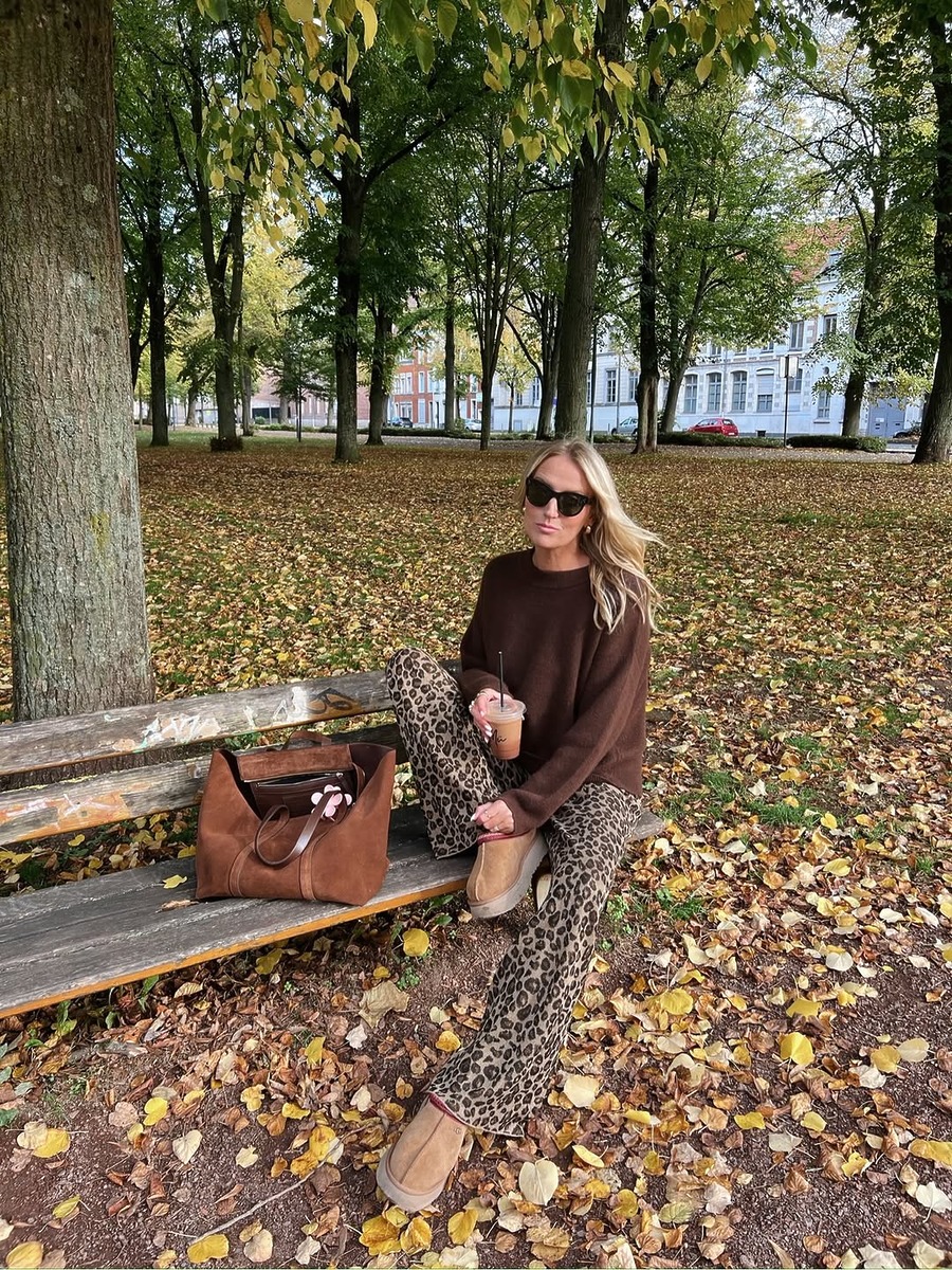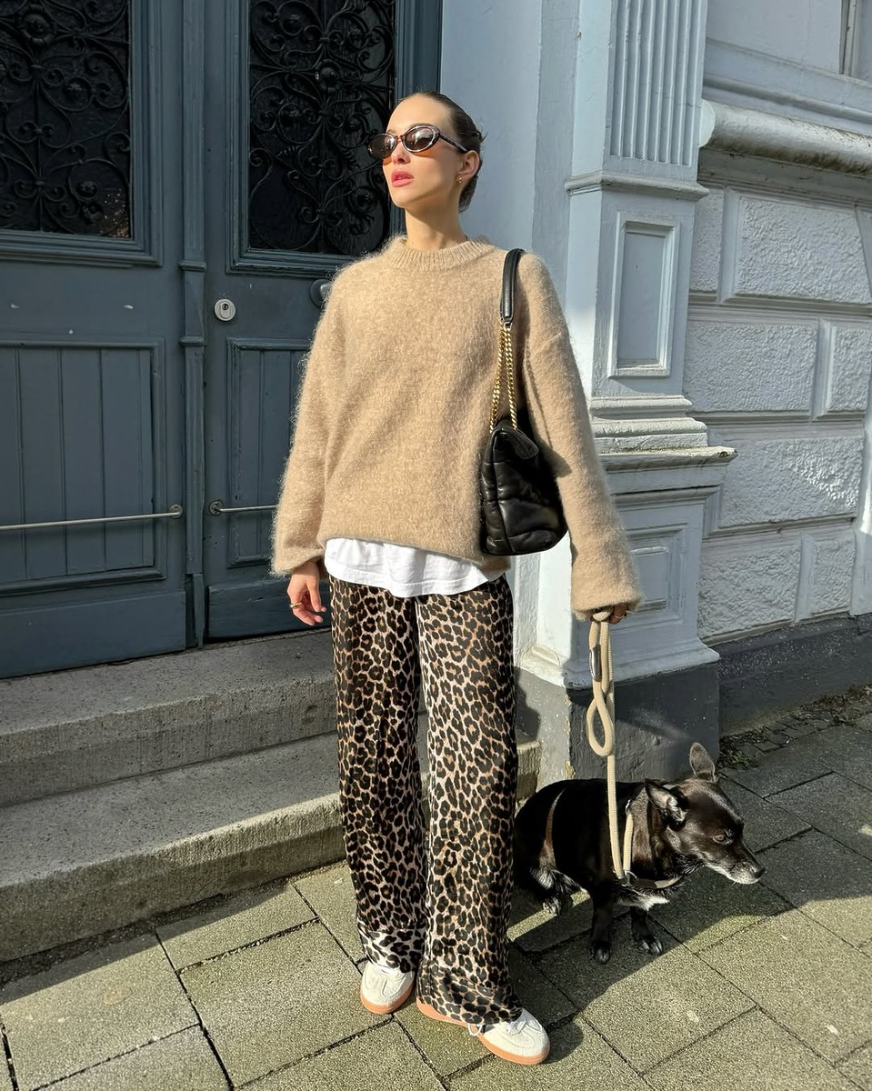 레오파드 패턴은 머리부터 발 끝까지, 어떤 아이템에도 적용할 수 있어요. 이번에는 팬츠에 힘을 주는 건 어떨까요? 루스한 실루엣의 와이드 팬츠가 레오파드 패턴을 입으면 단숨에 드레시하게 변신한답니다. 상의는 이번 시즌 키 컬러인 브라운 계열의 니트 아이템을 매치하는 거죠. 레오파드 패턴과 비슷한 톤의 아이보리, 베이지, 브라운 컬러의 상의를 입으면 전체적인 컬러가 부드럽게 이어지면서 부담스럽지 않게 연출할 수 있어요.