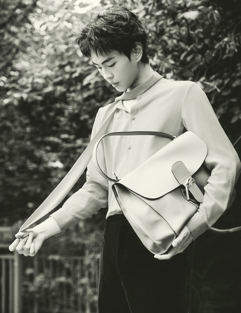 ‘브리앙 템포’ 백은 델보. 스카프 디자인의 셔츠와 벨벳 소재 팬츠는 발렌티노(Valentino).