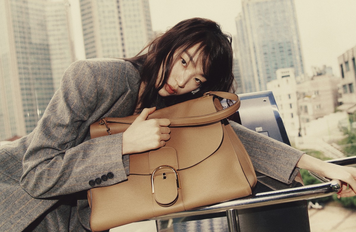 새로운 익스클루시브 가죽인 ‘얼루어 카프’ 소재를 사용해 한층 유연해진 ‘브리앙 템포’ 백은 델보(Delvaux). 클래식한 새빌 로 스타일의 재킷과 스커트는 에르뎀(Erdem).