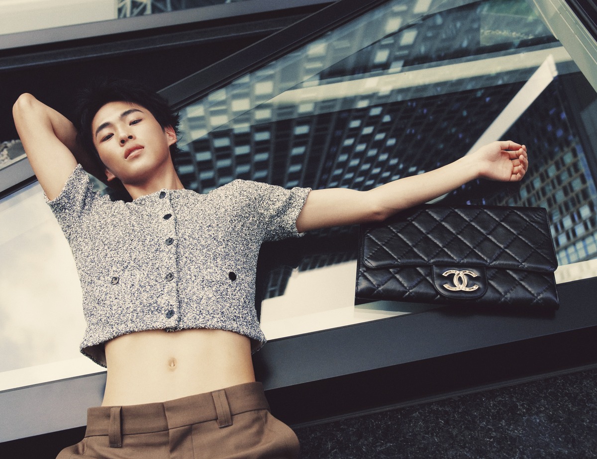 카프스킨 소재 ‘라지 클러치’ 백은 샤넬(Chanel). 트위드 소재 크롭트 카디건은 토리버치. 울 팬츠는 르메르.