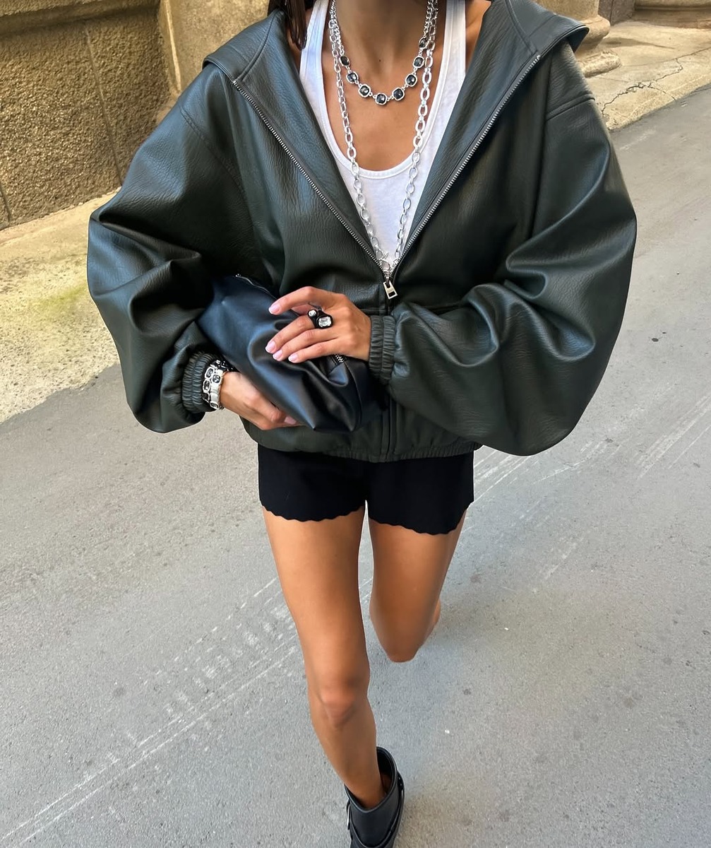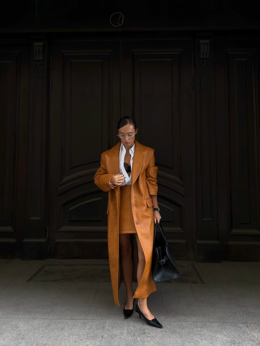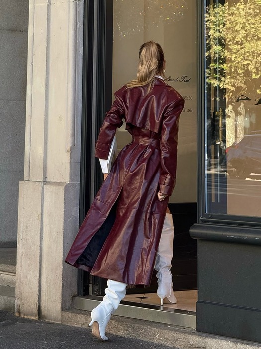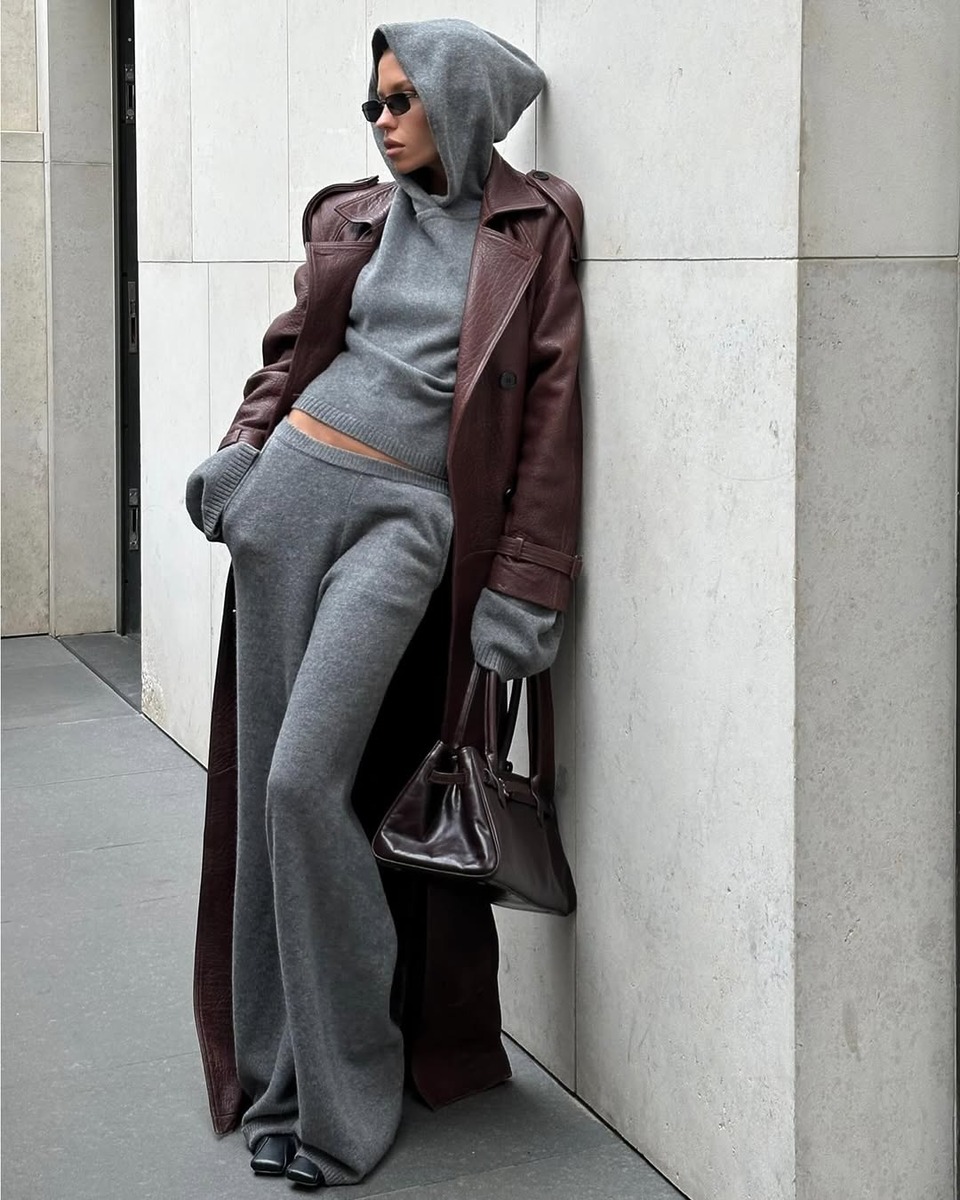 핀터레스트, SNS의 느낌 좋은 이들이 가을을 맞이해 선보이는 아이템 중 가장 눈에 띄는 건 바닥에 끌릴 정도로 긴 기장의 맥시 레더 아우터가 아닐까 싶어요. 레더 아우터답게 스틸레토 힐이나 부츠와 매치해도 좋지만 알렉산드라처럼 그레이 후드 니트 셋업과 함께 입어도 색다른 매력을 연출할 수 있죠. 드라마틱한 가을 ootd를 원한다면 과감하게 한 번 도전해 보세요.