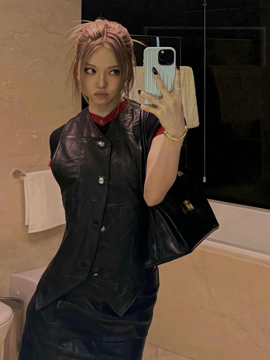 레더 아이템을 아우터로만 즐길 수 있는 건 아닙니다. 구찌 행사에 참석한 올데이 프로젝트의 애니는 짙은 레드 컬러의 레더 미니 드레스를, 윈터는 벨트 장식이 시크함을 더해주는 블랙 홀터넥 슬리브리스 드레스를, 베일리 석은 가죽 소재의 베스트와 H 라인 스커트 셋업으로 시크한 룩을 완성했어요. 여성스럽고 성숙한 느낌을 연출하고 싶다면 레더 소재의 드레스 또는 스커트를 적극 활용해 보세요!