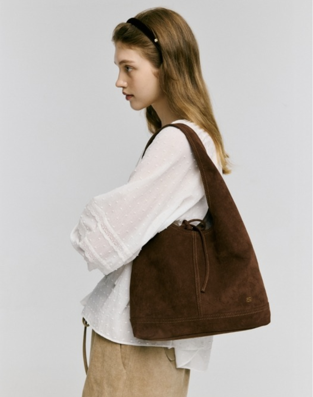 재킷에 이어 가장 눈에 자주 띄는 것은 바로 스웨이드 백이에요. 이번 시즌에는 사이즈가 큰 가방이 인기를 끌 예정인데, 유연하고 부드러운 스웨이드 소재는 빅 백과 아주 잘 어울리죠. 스웨이드 백은 심플한 룩에특유의 질감으로 포인트를 주는 식으로 활용하기에 좋아요. 스웨이드로 제작한 로퍼나 부츠는 계절감을 잘 드러내주는 아이템이에요. 비슷한 톤의 재킷이나 가방 등과 함께 믹스 매치 하면 가을 분위기를 한껏 고조 시킬 수 있어요. 올가을, 옷장 속에 스웨이드 소재를 구비해보세요. 스타일을 한층 부드럽고 우아하게 만들어줄 키 아이템이 될 거에요.