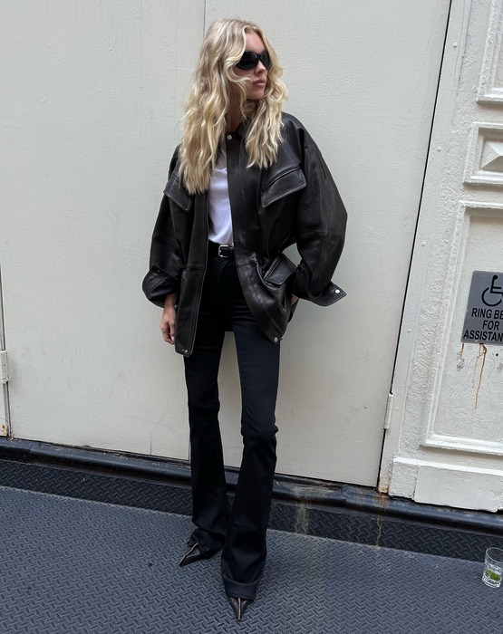 바야흐로 레더 입기 좋은 최적의 시기가 왔습니다. 아침 나절부터 기온이 뚝 떨어지는 밤까지 입고 벗기 편한 레더 재킷이 눈에 자꾸 아른거린다면 지금이 절호의 기회! 내로라하는 럭셔리 브랜드부터 트렌디한 SPA 브랜드까지 오버핏 레더 재킷을 쏟아놓고 있기 때문이죠. 레더 아우터를 가장 빠르고 쉽게 스타일링하는 방법은 바로 데님에 입는 것. 루스한 데님 팬츠부터 플레어 진까지 지금 유행하는 데님에 가장 잘 어우러집니다.