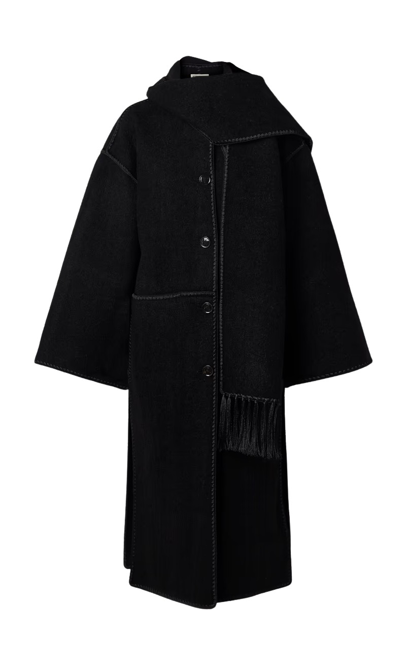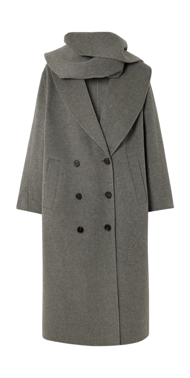 아우터만으론 추위를 막을 방법이 없을 때, 머플러 달린 케이프 코트가 유일한 해답이 되어줄 것.