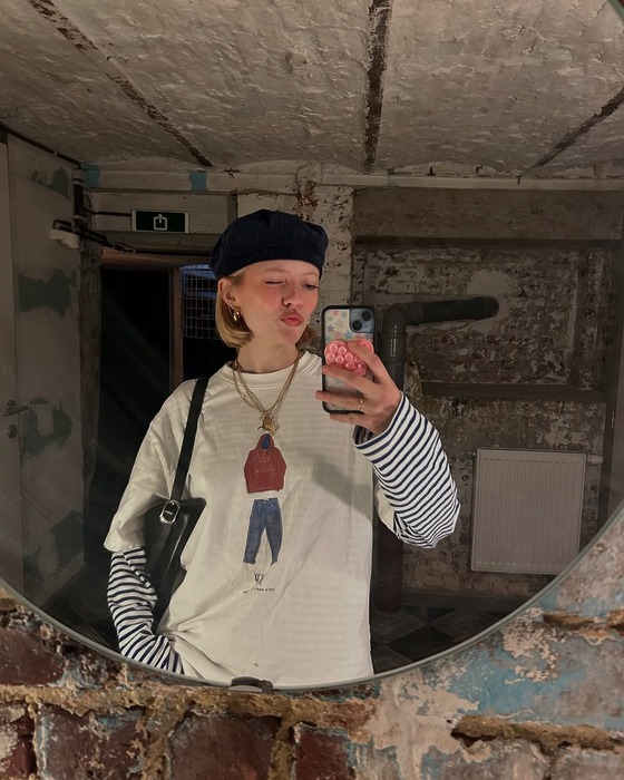 스트라이프 패턴은 지루한 룩에 위트를 더하는 힘이 있습니다. 뻔한 티셔츠 조합도 스트라이프가 더해지면 귀엽고 경쾌한 무드로 변신하죠. 반팔 티셔츠 아래에 스트라이프 티셔츠를 받치면 캐주얼하면서도 쿨한 룩이 되고, 스트라이프 니트를 어깨에 둘러주는 것만으로도 룩 전체에 포인트가 살아나요.