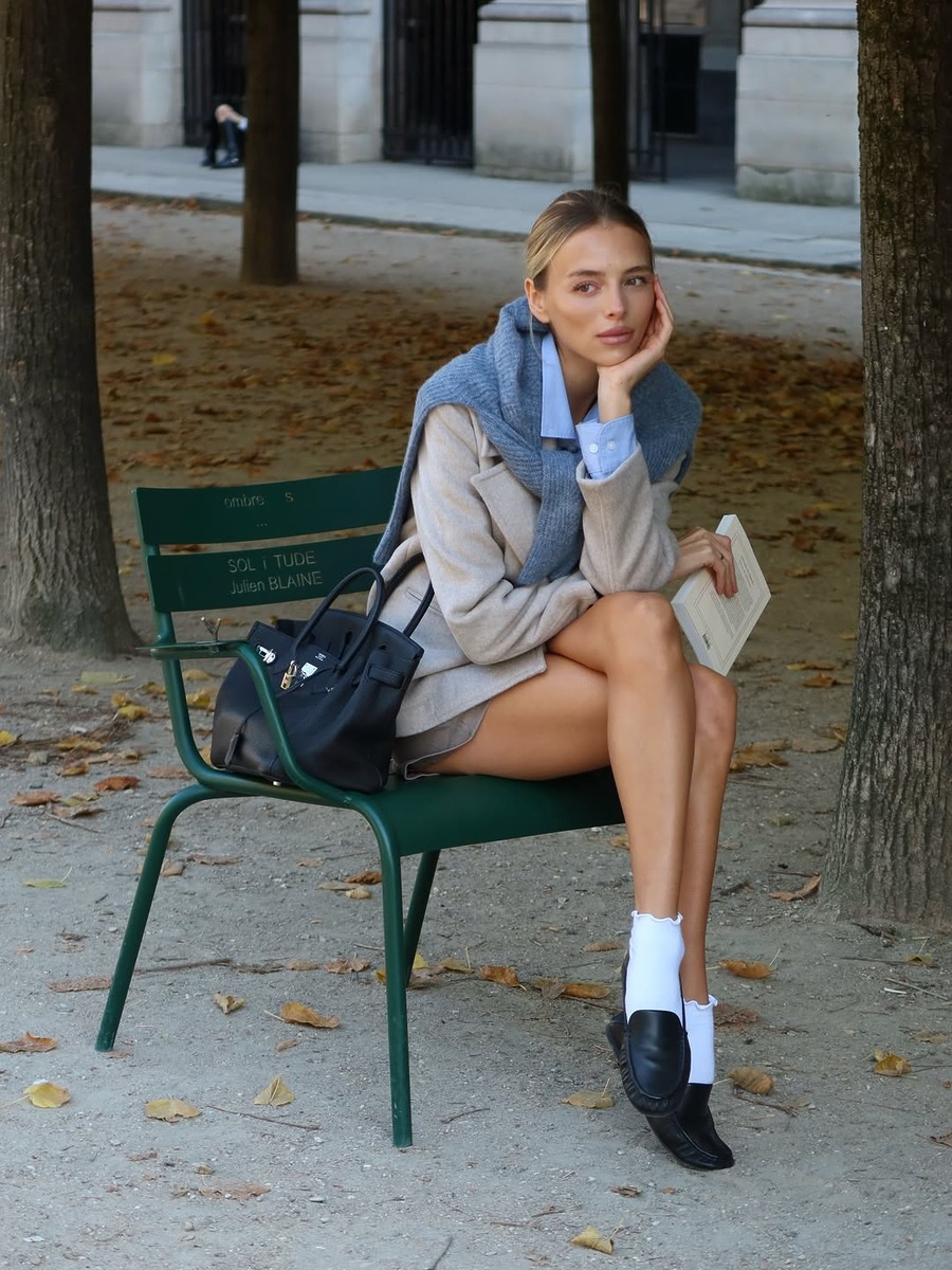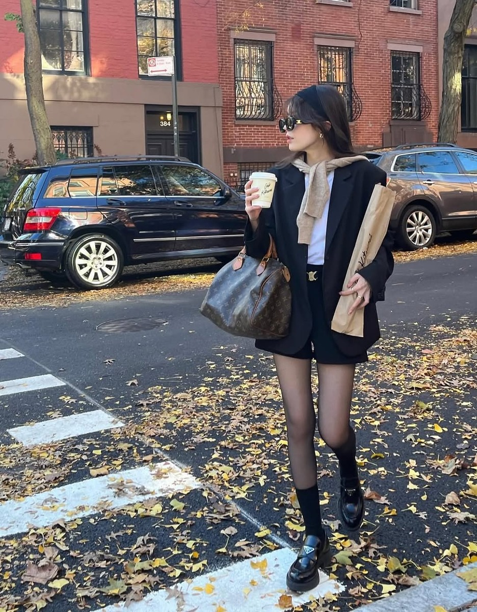 클래식하고 단정한 느낌의 로퍼를 색다르게 연출하고 싶다면 타이츠나 니삭스를 활용해보세요. 속살이 은은하게 비치는 블랙 스타킹에 로퍼를 신으면 부담스럽지 않고, 여성스런 느낌을 낼 수 있어요. 시스루 타이츠와 양말을 함께 레이어링해도 색다른 멋이 느껴지죠. 짧은 하의를 입었다면 니하이 삭스와 로퍼로 스타일링을 마무리해보세요. 귀여우면서도 경쾌한 느낌을 더할 수 있을거에요.