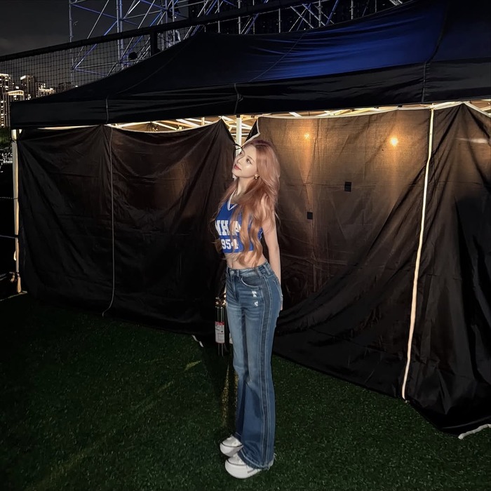 골반 여신 있지 유나의 몸매를 더욱 예쁘게 연출해 준 이 데님은? 미국 브랜드 캔캔의 제품으로 가격은 십만 원 초반대 입니다. 유나 외에도 카라의 허영지, 아이들 미연도 착용했다고 하네요. 하이 웨이스트에 바지 옆에 라인이 들어가 다리를 더욱 길어 보이게 연출할 수 있어요.게다가 밑단이 플레어로 퍼져 높은 굽의 슈즈와 매치하기도 좋습니다. 미국에서 온 바지인 만큼 기장은 꽤나 긴 편이라는 점, 참고해 주세요.