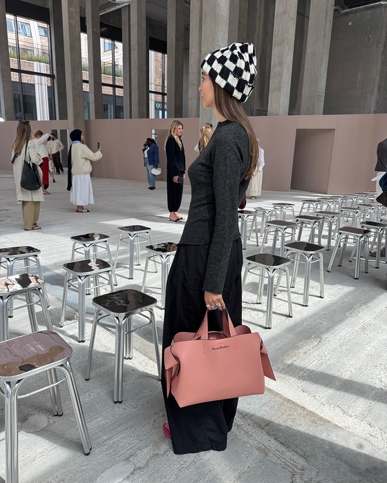 약 100년 전부터 존재하고 당시 크게 인기를 끌었던 클래식한 디자인 ‘클로슈’부터 아주 볼드한 형태까지, 퍼 모자는 올해에도 다양한 실루엣과 컬러로 거리를 점령할 예정입니다. 인플루언서 일마는 차분한 그레이 컬러에 보송보송한 촉감을 지닌 종을 닮은 실루엣을 지닌 클로슈를 몸을 유려하게 타고 흐르는 롱 코트와 함께 매치해 편안하면서 고급스러운 ‘꾸안꾸’ 룩을 완성했어요.