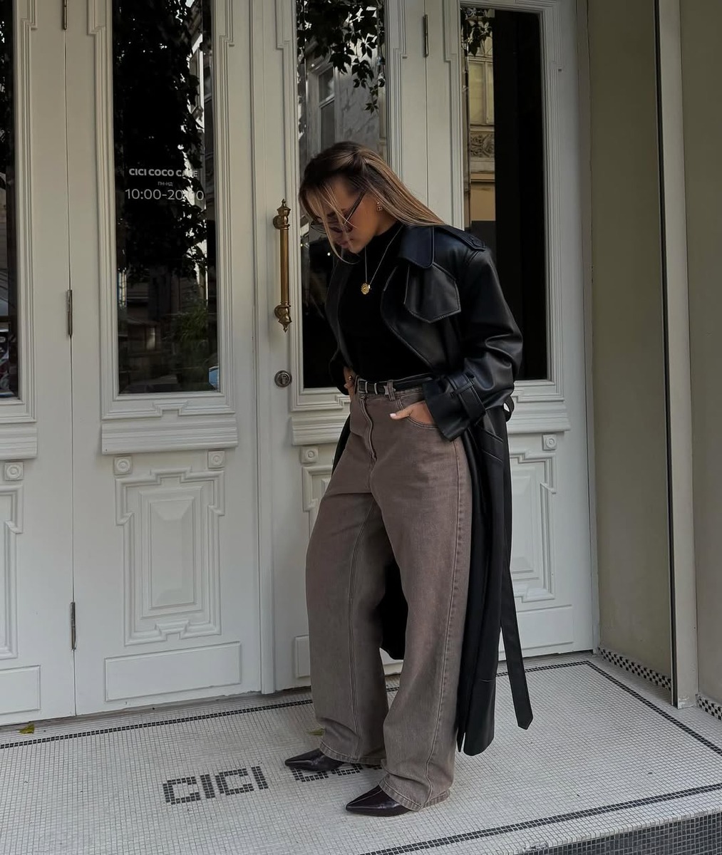 길게 떨어지는 레더 코트는 그야말로 카리스마가 느껴지는 아이템이에요. 편안한 데님 팬츠도, 캐주얼한 조거 팬츠도 모두 단숨에 쿨하게 만들어주는 마법같은 아이템이죠. 어떤 아이템도 따라올 수 없는 강력한 존재감이 있어요. 레더 코트를 입는다면 이너는 심플하게 입어, 코트 자체가 주인공이 되도록 스타일링 하는 게 좋아요. 다크 브라운, 카멜, 토프, 그레이 등 가을과 잘 어울리는 컬러와 톤온톤으로 매치하면 룩이 전체적으로 고급스럽게 정돈되죠. 여기에 스니커즈를 매치하면 쿨한 스트리트 감성이, 날렵한 힐 부츠나 슬림한 토 라인이 돋보이는 앵클 부츠를 신으면 성숙하고 세련된 분위기가 연출된답니다.