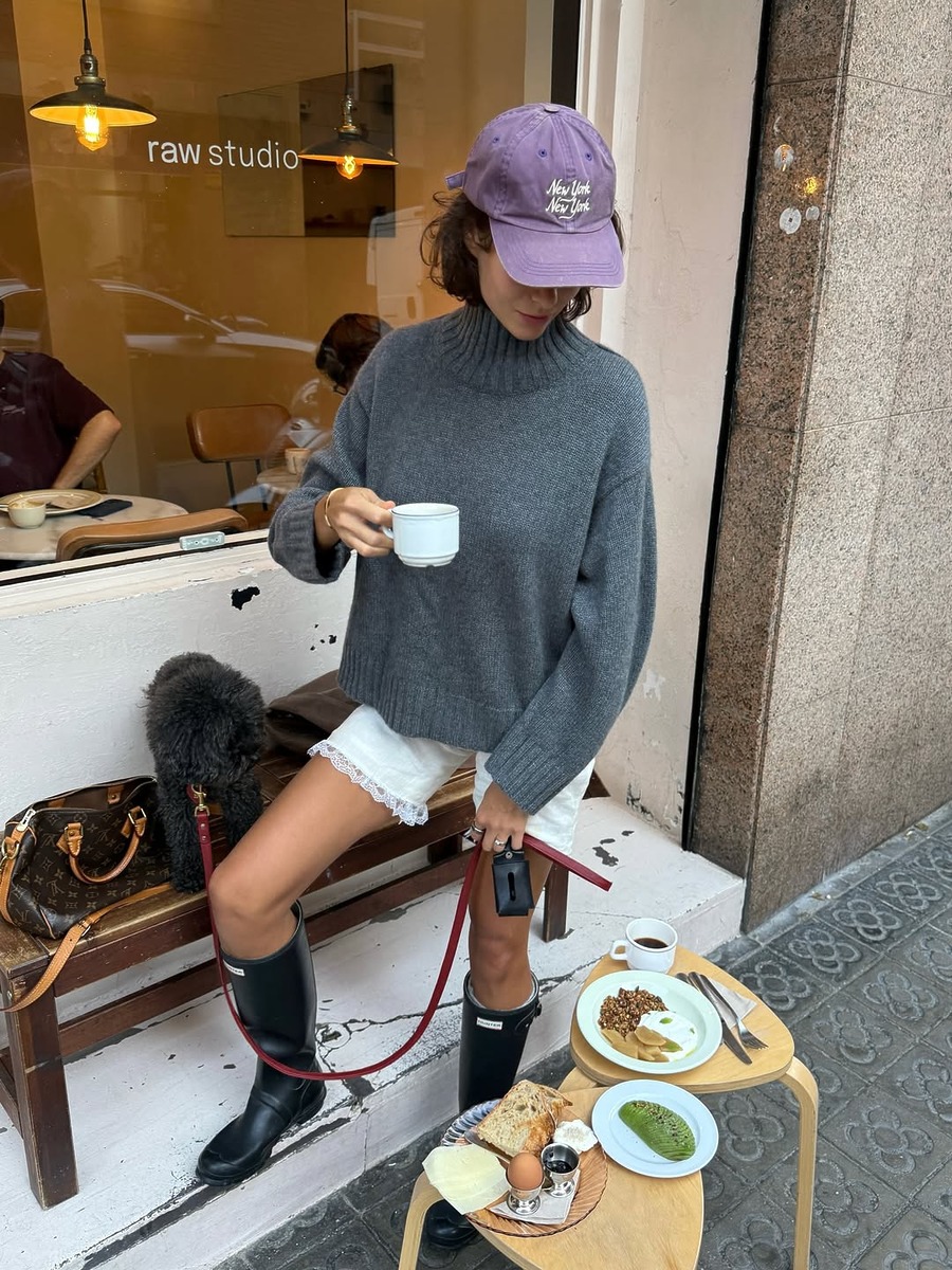 터틀넥이 단지 클래식한 아이템이라고 생각했다면 오산입니다. 니트에 쇼츠, 볼캡, 레인부츠를 더하면 의외로 캐주얼하고 편안한 무드가 연출되죠. 실용적이면서도 활동적인 스타일 덕분에 주말 나들이나 여행룩으로도 손색없어요.