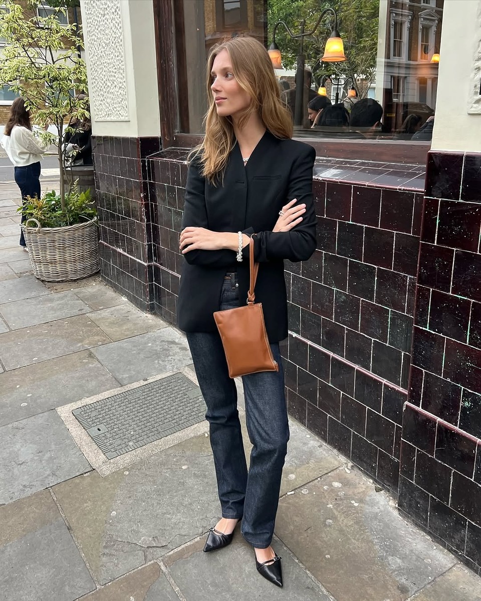 굽이 높은 힐이 부담스럽다면, 날렵한 앞코만 유지한 스틸레토 플랫을 활용하세요. 기본 플랫 슈즈보다 훨씬 세련된 인상을 주기 때문에, 인디고 데님이나 미디 스커트와 매치하면 포멀하면서도 편안한 출근룩이 완성됩니다. 장시간 신어도 무리가 적어 실용적이면서 스틸레토 특유의 긴장감은 그대로 유지할 수 있다는 게 장점이죠.