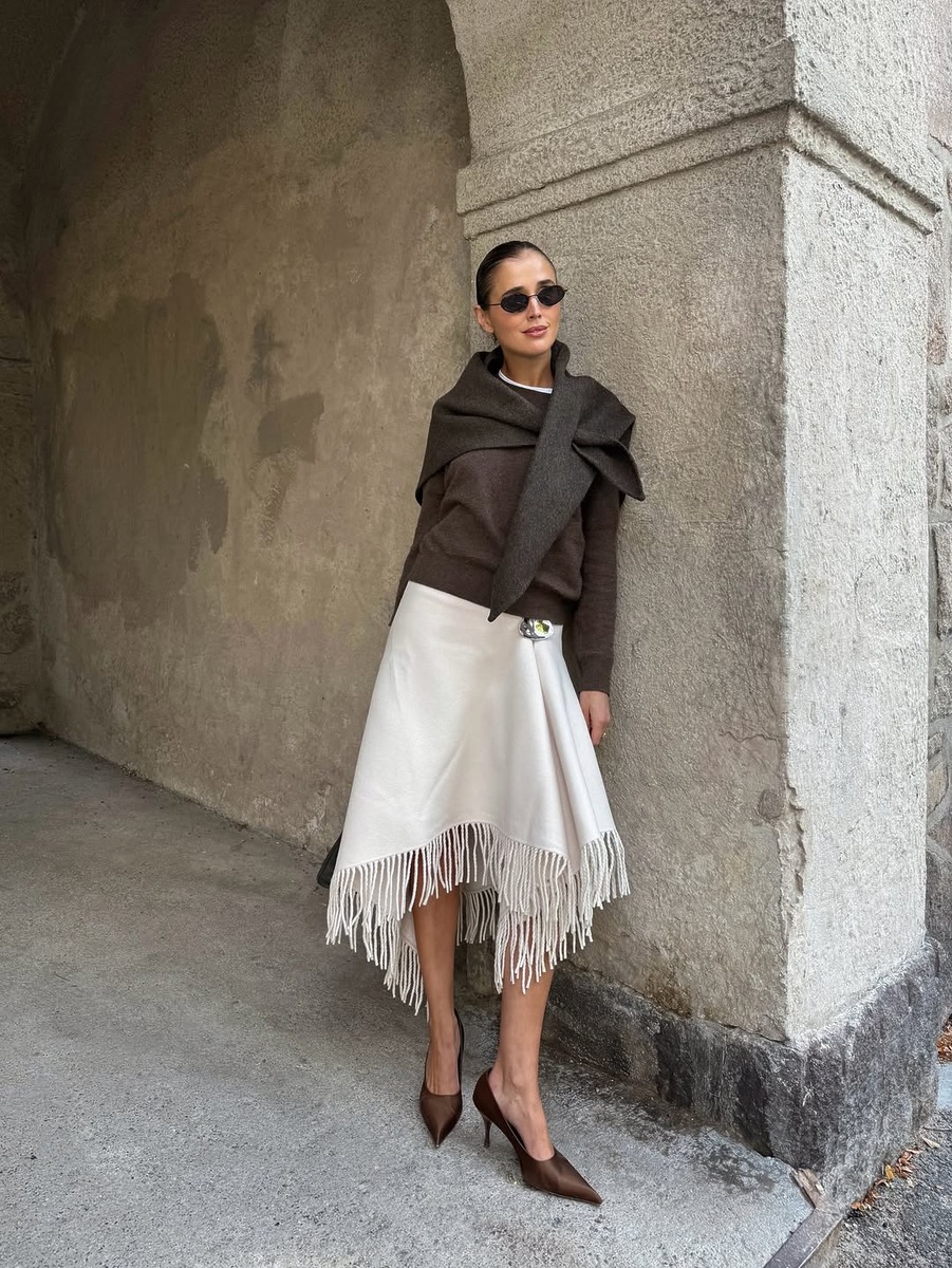 스커트 보다 스틸레토 힐과 가장 잘 어울리는 아이템이 있을까요? 이 조합의 포인트는 스커트와 슈즈의 톤! 하의가 어두운 컬러라면 아이보리나 베이지 같은 밝은 힐을 매치해 시선을 끌어올리고, 밝은 톤이라면 블랙이나 브라운 같은 진한 컬러 힐을 더해 안정감을 더해 보세요. 두 아이템의 밸런스가 스타일의 완성도를 결정짓는 키 포인트랍니다.