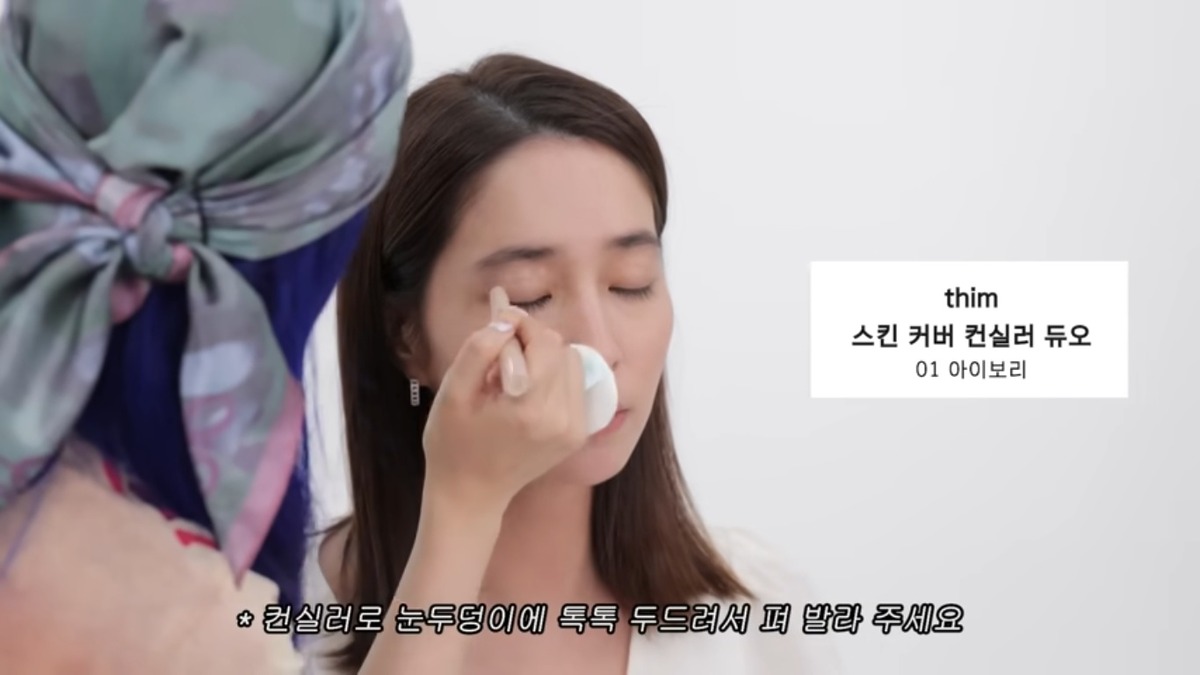 - 2. 피곤한 것처럼 꺼져 보이는 눈두덩이. 이사배는 컨실러를 톡톡 두드린 다음 펴 발라 눈두덩을 채웠습니다.
