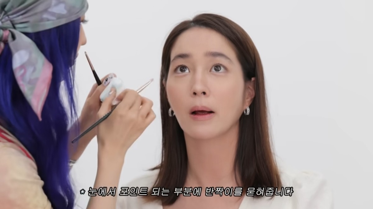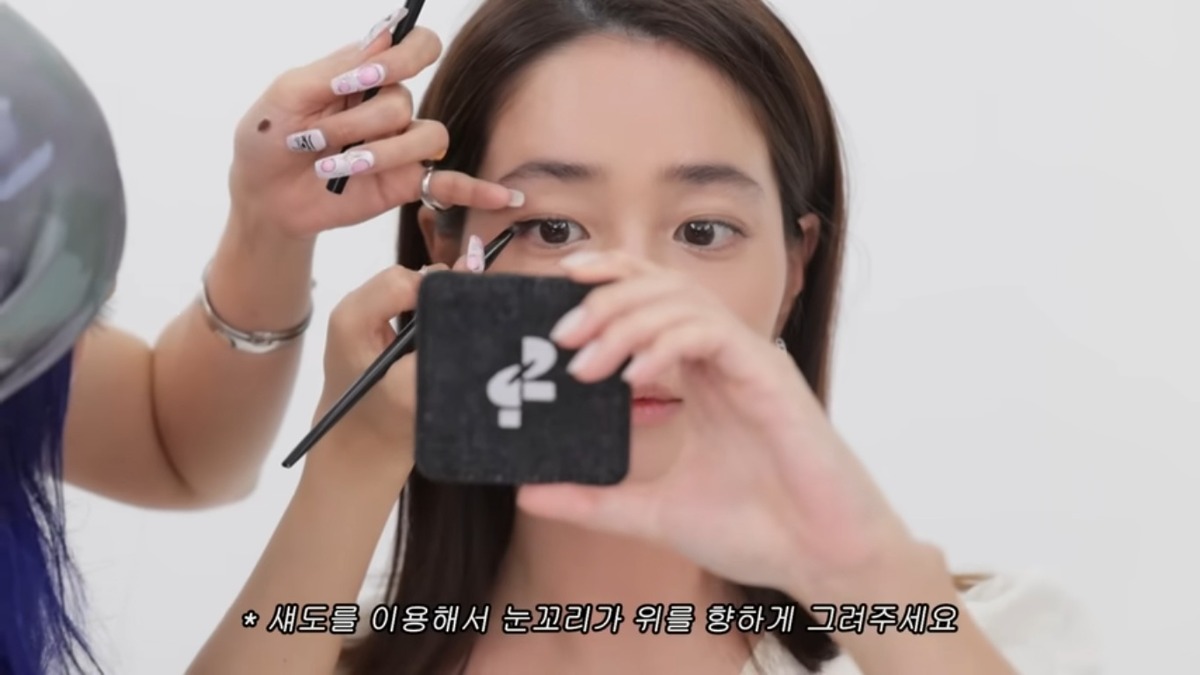 - 2. 이민정의 또 다른 고민은 눈꼬리가 처져 보이는 것인데요. 이사배의 솔루션은 파우더로 눈꼬리 음영을 덮어준 다음 라인을 그리는 것입니다.
