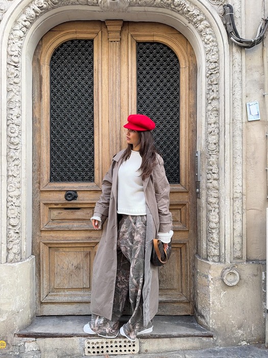 가을이라는 분위기를 즐길 수 있는 가장 정석적인 방법, 바로 베레와 같은 클래식한 모자를 활용하는 것이죠. 여기에 패션 인플루언서들처럼 레드 베레를 선택하면 프렌치 무드가 한껏 올라갑니다. 컬러 포인트를 주려면 나머지 아이템은 무난하게 하는 것이 보통이지만 스트라이프, 도트, 밀리터리와 같은 패턴과 함께 매치하면 유니크함이 극대화되니 참고하세요.