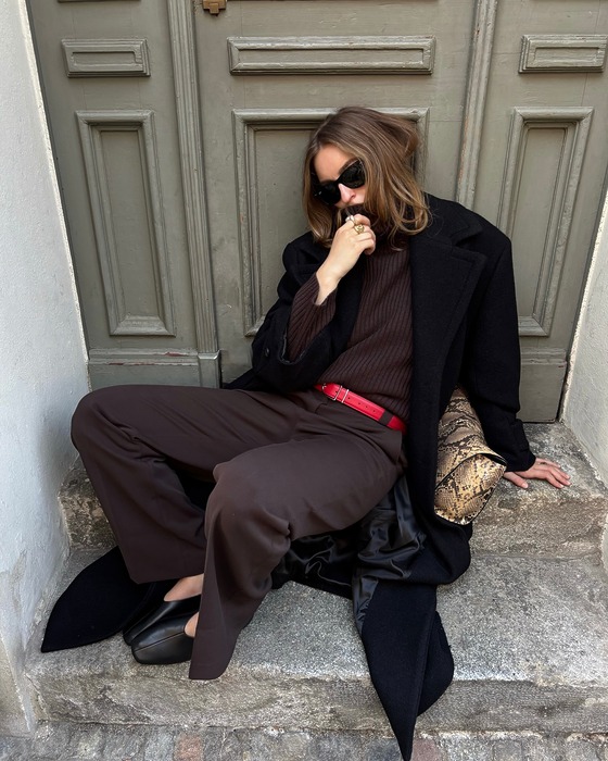 올블랙 코디에 레드 벨트를 적용하면 이처럼 단순하고 확실하게 스타일링을 완성할 수 있습니다. 어떤가요? 올가을, 단풍처럼 붉은 레드를 온몸 여기저기에 스타일링해보고 싶지 않은가요? 가을부터 겨울까지, 앞서 소개한 모자, 가방, 신발, 벨트 그리고 의상뿐 만이 아니라 머플러, 장갑 등 레드를 포인트로 한 취향 좋은 룩은 무궁무진하게 등장할 예정입니다.