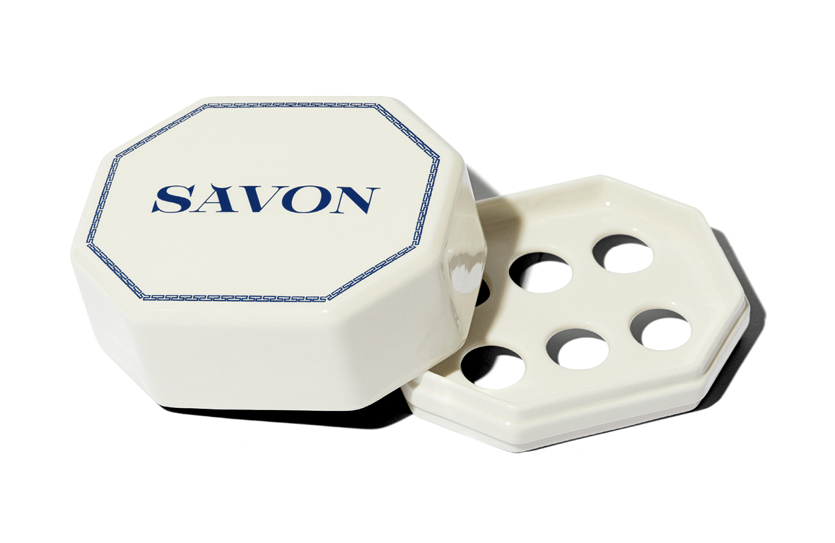 비누의 형태와 향기의 지속력을 높이는 도자기 소재의 비누 케이스. 208g 14만5천원.