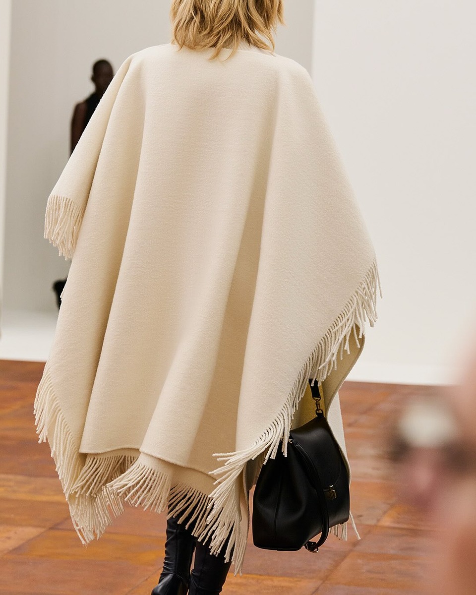 켄달 제너가 입은 피비 파일로의 가죽 케이프부터 테슬 디테일을 더해 모던한 보헤미안 시크를 보여준 토템의 아이템까지, 케이프에는 패딩이나 코트, 봄버 등등 수많은 다른 겨울 아우터에는 없는 특유의 낭만이 있습니다.