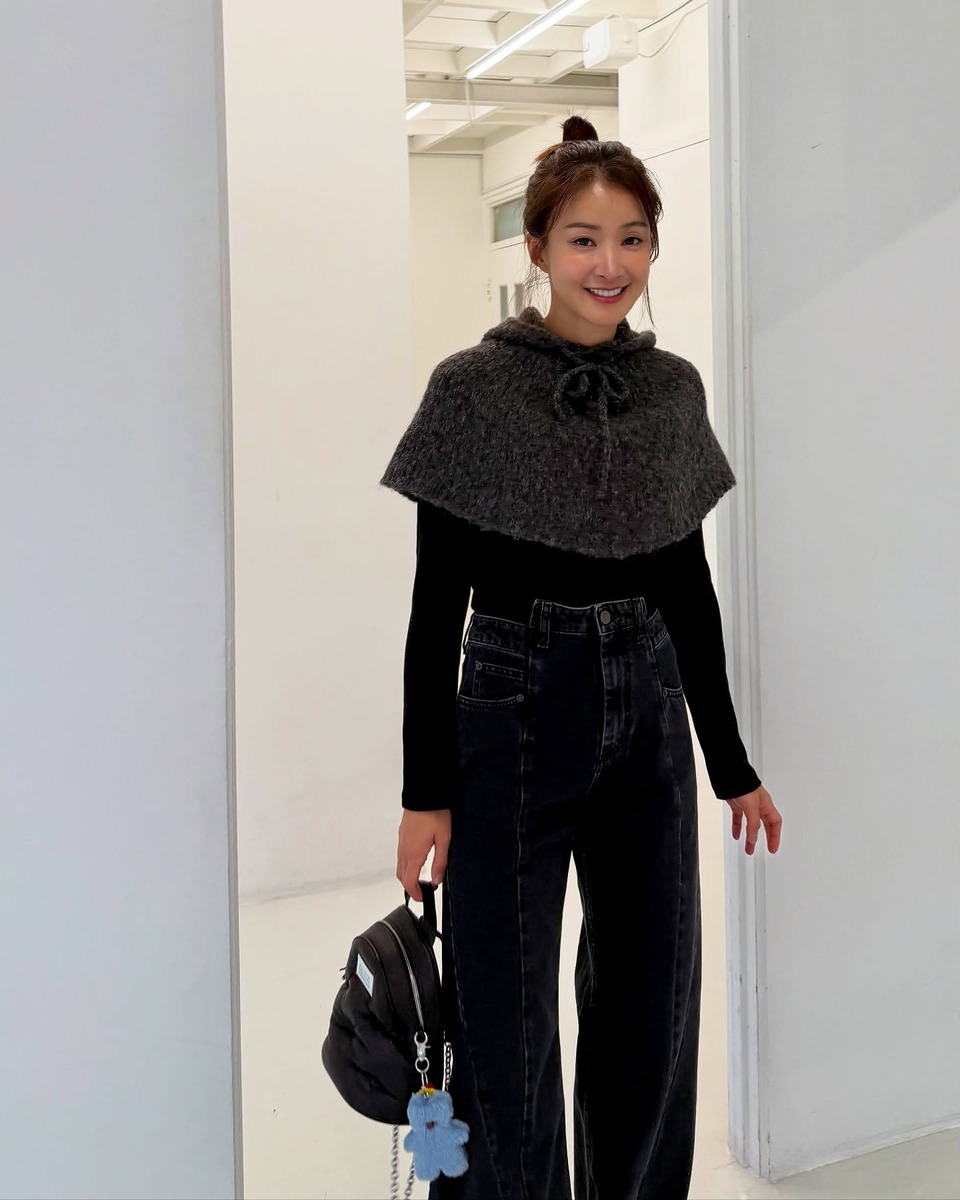 이시영은 후드가 달려 바라클라바로도 활용할 수 있는 니트 케이프로 귀여움을 한껏 어필했습니다. 장희령이 입은 니트 톱은 사실 케이프와 반도, 투피스로 구성된 아이템입니다. 초가을까지는 장희령이 입은 스타일로, 이후 날이 쌀쌀해졌을 때는 안에 핏되는 셔츠나 티셔츠를 레이어링 해주고 그 위에 케이프를 덧입는 방식으로 다양하게 연출할 수 있습니다. 올겨울엔 다들 케이프 하세요!