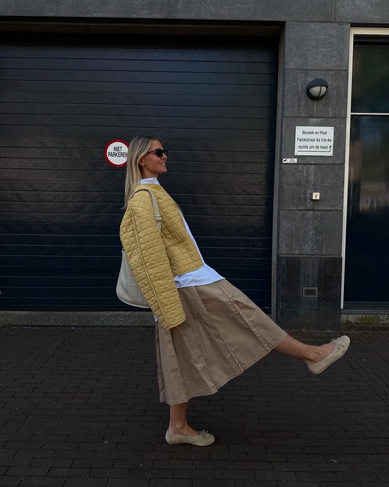 경량패딩을 고를 땐 먼저 내가 자주 입는 옷을 확인하세요. 만약 캐주얼한 의상보다는 포멀하고 클래식한 의상을 자주 입는다면 경량패딩이 자칫 편해 보일 수 있기 때문이죠. 스커트에 스타일링한 홀리(@holliemercedes)는 가로 스트라이프 선이 명확한 패딩을 고른다면 셔츠 위에도 단정하게 코디할 수 있죠. 컬러 역시 베이지 스커트로 톤온톤을 고려한다면 튀지 않고 스타일리시하게 입을 수 있을 거예요.