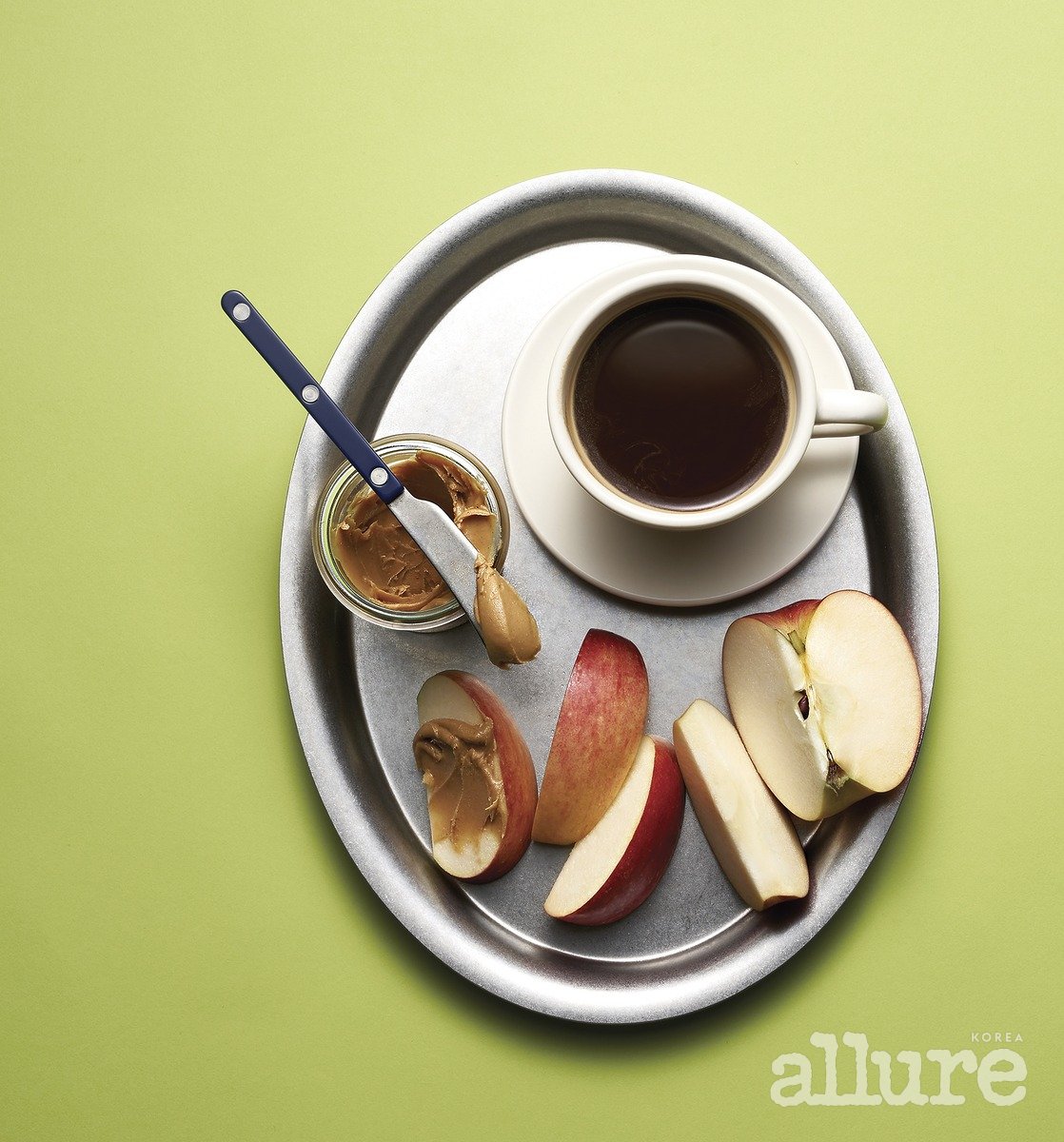 1분 1초가 아까운 직장인에게 아침 사과만큼 좋은 선택지가 또 있을까? 출근 전, 단 3분만 투자하면 온종일 생기 넘치는 활력을 얻을 수 있다. 부사, 홍로, 감홍, 아오리 등 사계절 내내 맛볼 수 있는 다채로운 사과는 식이섬유가 풍부해 밤새 쉬고 있던 장을 자연스레 깨운다. 아삭한 사과를 씹으면 뇌혈류량이 증가해 잠이 깨고 집중력도 향상되니 일석이조. 맛이 지루하다면 설탕이 첨가되지 않은 100% 땅콩버터나 무가당 그릭요거트를 곁들여도 좋다. 사과의 당분으로 혈당이 상승하는 걸 억제하는 동시에, 단백질과 건강한 지방으로 포만감까지 한층 높여줄 것. 잠이 많다면 블랙 커피 한 잔으로 카페인의 각성 효과를, 균등한 영양분을 섭취하길 원한다면 사워도나 통밀빵 한 장으로 탄수화물까지 야무지게 챙겨보자.