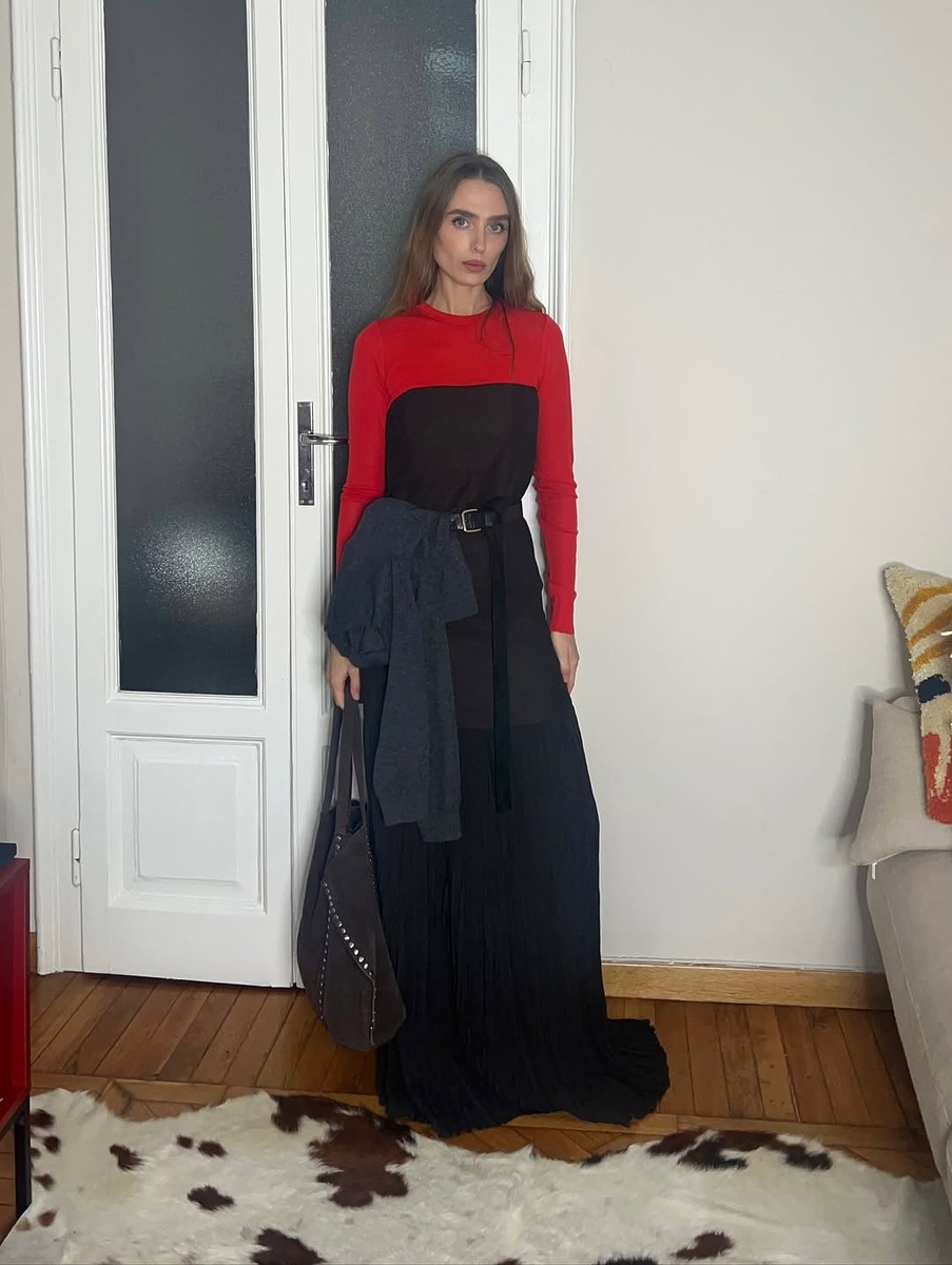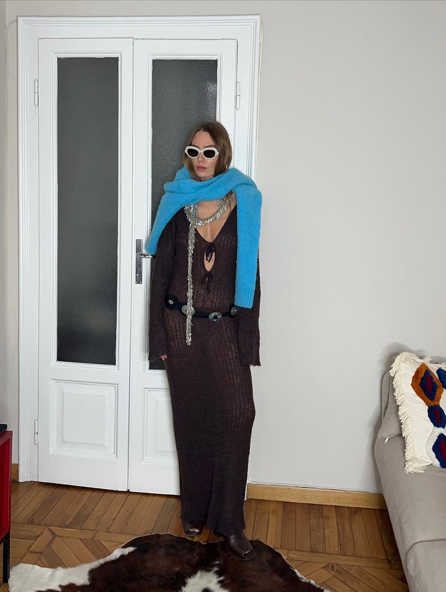 카디건을 허리에 두르는 방식이 식상하게 느껴진다면, 카디건을 허리에 끼워 넣어 보세요. 원피스에 벨트를 두르고 그 사이로 니트나 카디건을 살짝 걸치면 한층 입체적인 룩이 완성됩니다. 기온이 떨어지면 그대로 꺼내 입을 수도 있으니 실용성까지 완벽하죠.