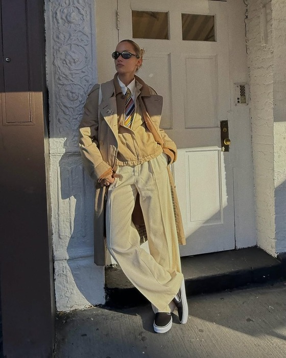 최근 가장 핫한 트렌드는 패턴에 패턴을 더하는 것! 켄달 제너는 체크 패턴 재킷에 또 다른 스트라이프 넥타이를 매치해 과감하면서도 세련된 스타일을 선보였습니다. 각기 다른 두 가지 패턴이 충돌하며 유니크한 매력을 뿜어내는데요. 각기 다른 패턴을 섞을 때는 색의 톤을 맞춰야 촌스럽지 않은 스타일링이 가능하다는 것. 잊지 마세요!