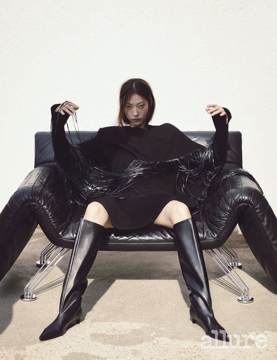 ‘몬토네’ 램스킨 소재에 프린지 장식을 더한 비스코스 드레스는 스포트막스(Sportmax). 카프스킨 소재 롱부츠는 질 샌더(Jil Sander).