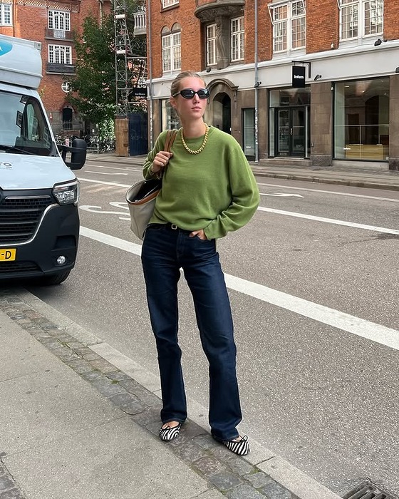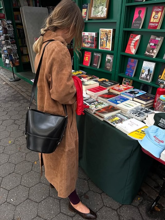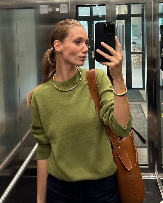 따뜻한 색감이 잘 어울린다면 올리브 그린을 시도해 보세요. 정갈한 수트에 올리브 그린 버킷백을 맨 것처럼요. 올리브 그린은 브라운 컬러와도 조합이 훌륭해요. 올리브 그린 니트에 생지 데님을 받쳐 입고, 브라운 백, 브라운 벨트를 매치해 멋스럽게 스타일링해 보세요!