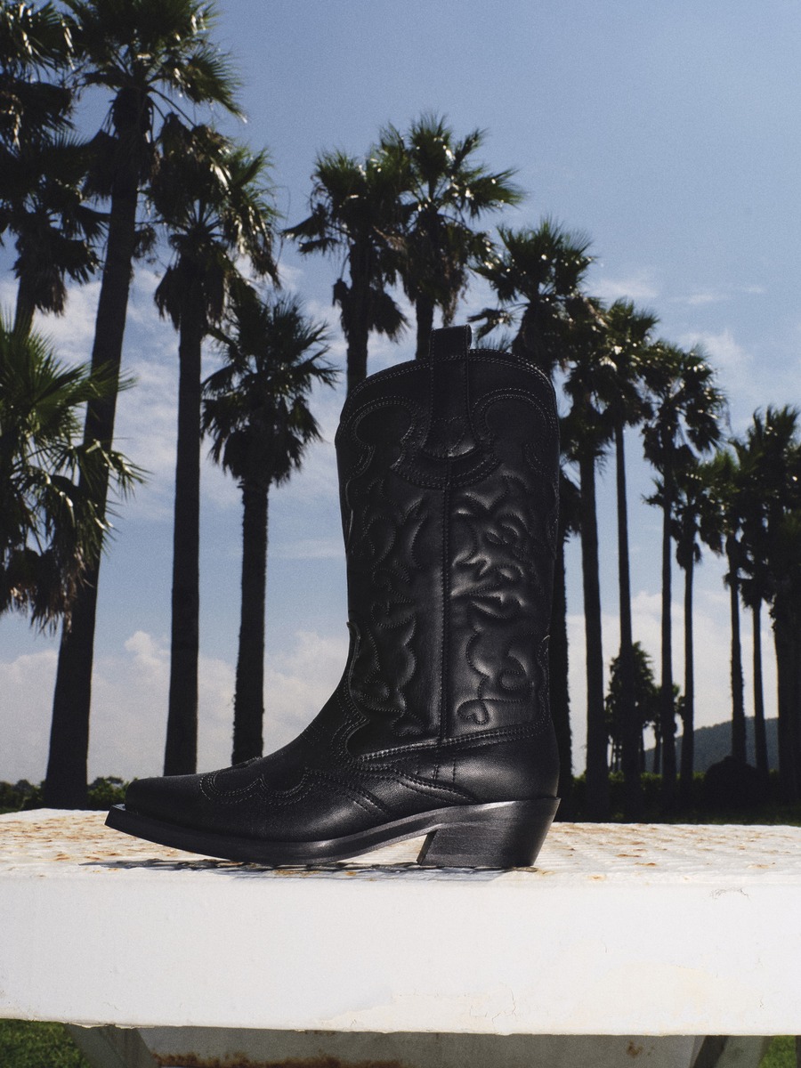 인조 가죽에 스티치를 더한 웨스턴 부츠는 1백28만원 가니(Ganni).