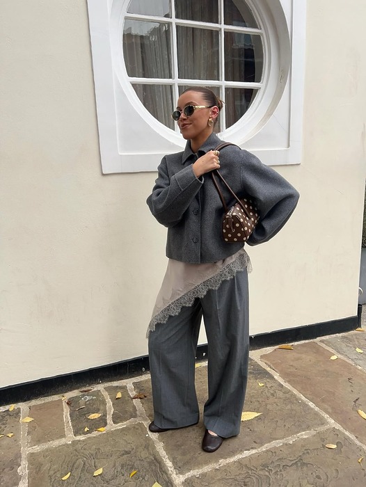 하프코트는 어떻게 입어야 가장 따뜻할까요? 액세서리를 활용할 수 있겠지만 멋을 포기하기 어렵다면 한 치수 큰 코트를 선택하세요. 몸에 딱 달라붙는 카디건이나 재킷류 위에 걸쳐도 넉넉할 만큼요. 아무래도 겨울에는 두툼한 스웨터를 받쳐 입는 경우가 많은데요. 소개한 것처럼 보온성이 뛰어난 소재의 하프코트에 겨울 바지를 입어도 여전히 추위가 두렵다면 상의를 최대한 레이어링하는 것이 방법이죠. 여기에 체크 셔츠나 레이스 스커트를 레이어링해 과하게 투박해 보이지 않도록 스타일링에 신경써보면 어떨까요?