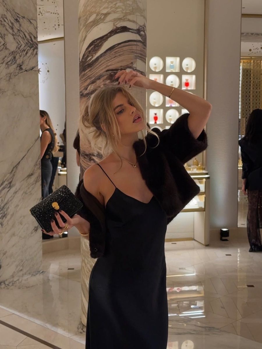 퍼 아이템은 그 하나만으로도 강력한 존재감을 발휘해요. 특히 격식을 차려야 하는 모임에 적합하죠. 신경써서 드레스 업한 느낌을 줄 수 있거든요. 심플한 블랙 드레스나 미니멀한 블랙 팬츠 룩 등도 퍼 아이템과 함께라면 훌륭한 파티 룩이 되죠. 풍성한 볼륨감의 퍼 아우터가 부담스럽다면 볼레로 스타일의 퍼 재킷이나 퍼로 만들어진 숄, 퍼 머플러로도 충분해요.