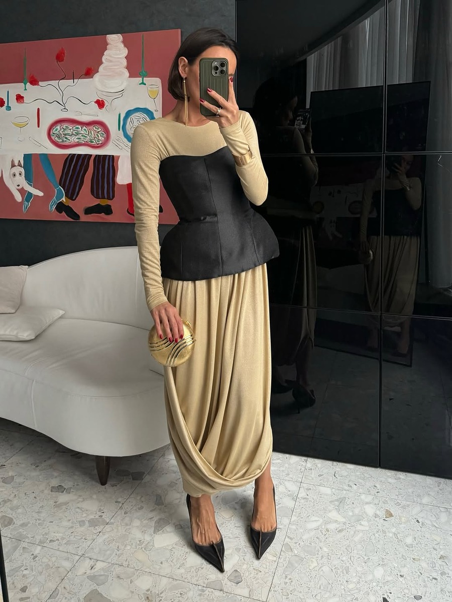세련되고 고급스런 분위기의 파티룩을 원한다면 컬러는 한, 두 컬러 정도만으로 사용하고, 한 포인트에 시선이 쏠리도록 스타일링해보세요. 블랙 일색의 룩이라면 스커트나 클러치 등에 강렬한 컬러감을 더하는 식이죠. 예를 들어, 플라워 모티프가 돋보이는 아이템이라면 올블랙 룩 바탕에 플라워 모티프가 눈에 띄게 스타일링해보세요. 반대로 화이트나 베이지 등 밝은 컬러를 입었다면 너비가 두꺼운 블랙 벨트나 롱 부츠를 매치하는 식이 좋겠죠?