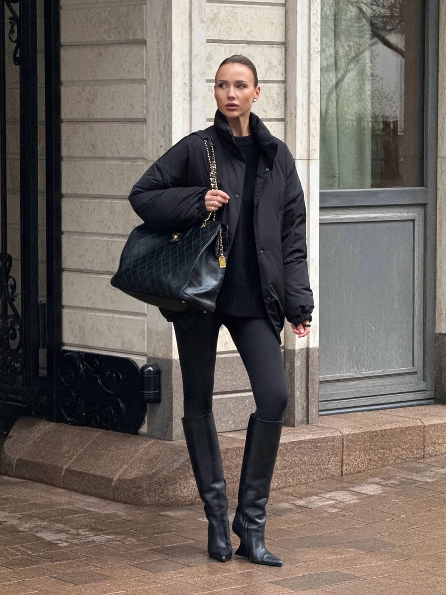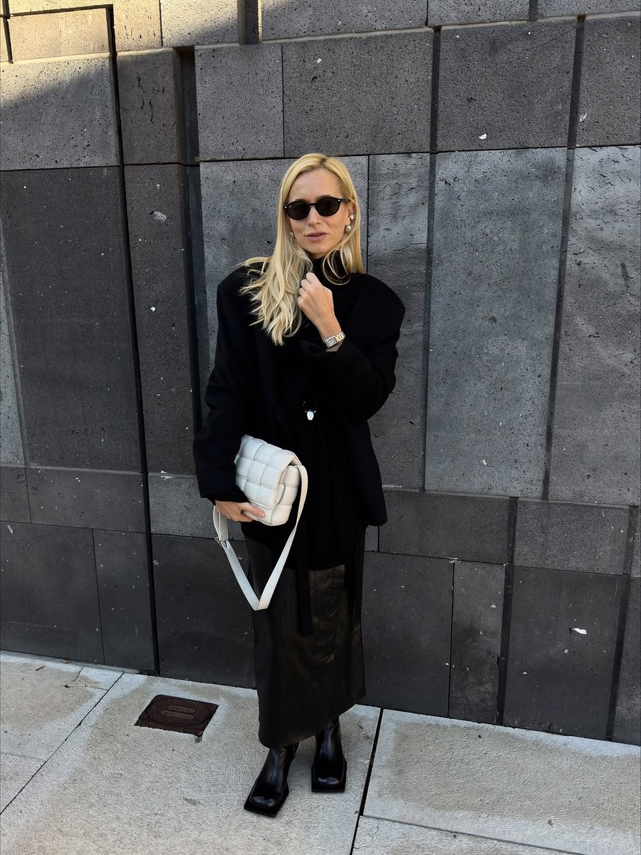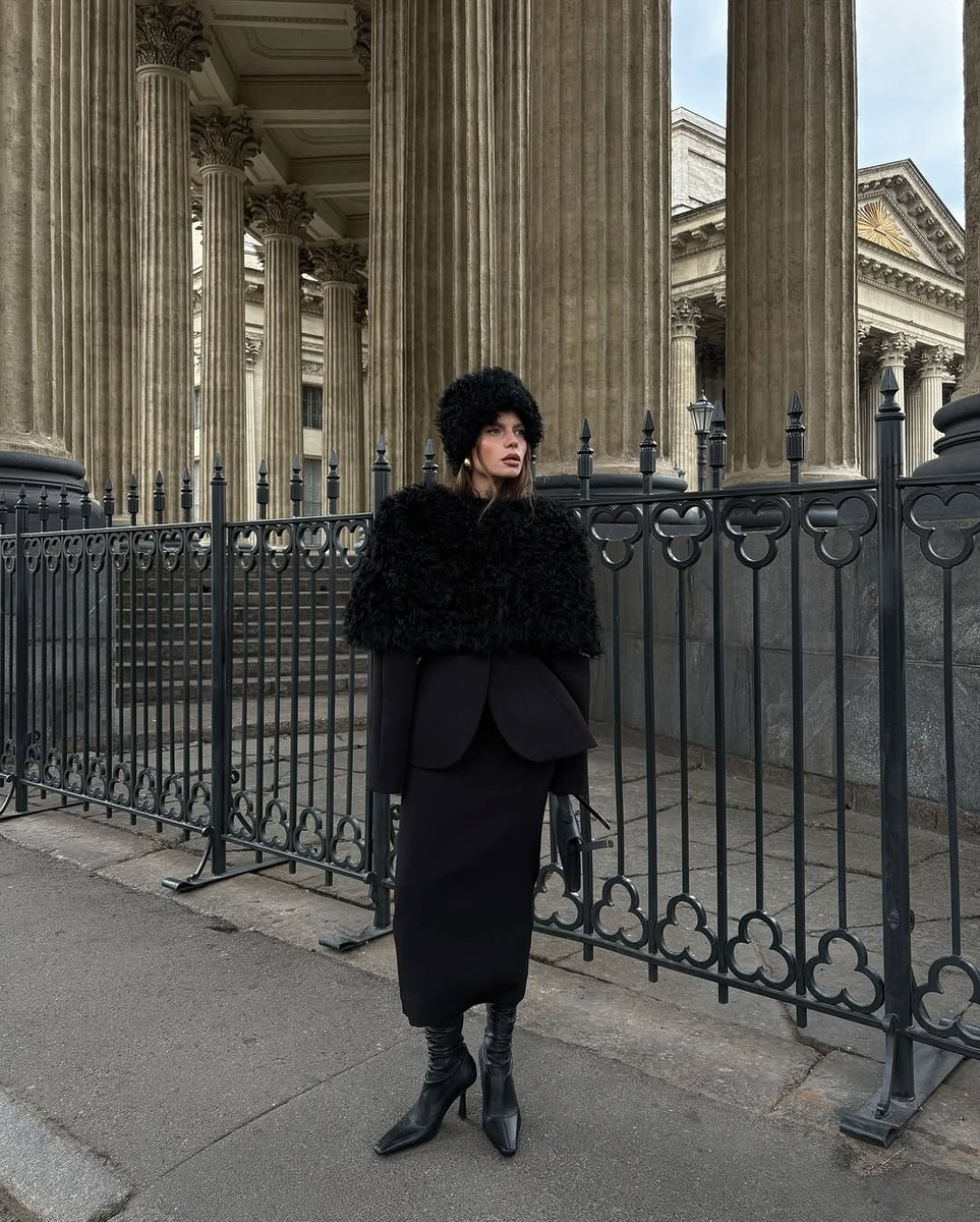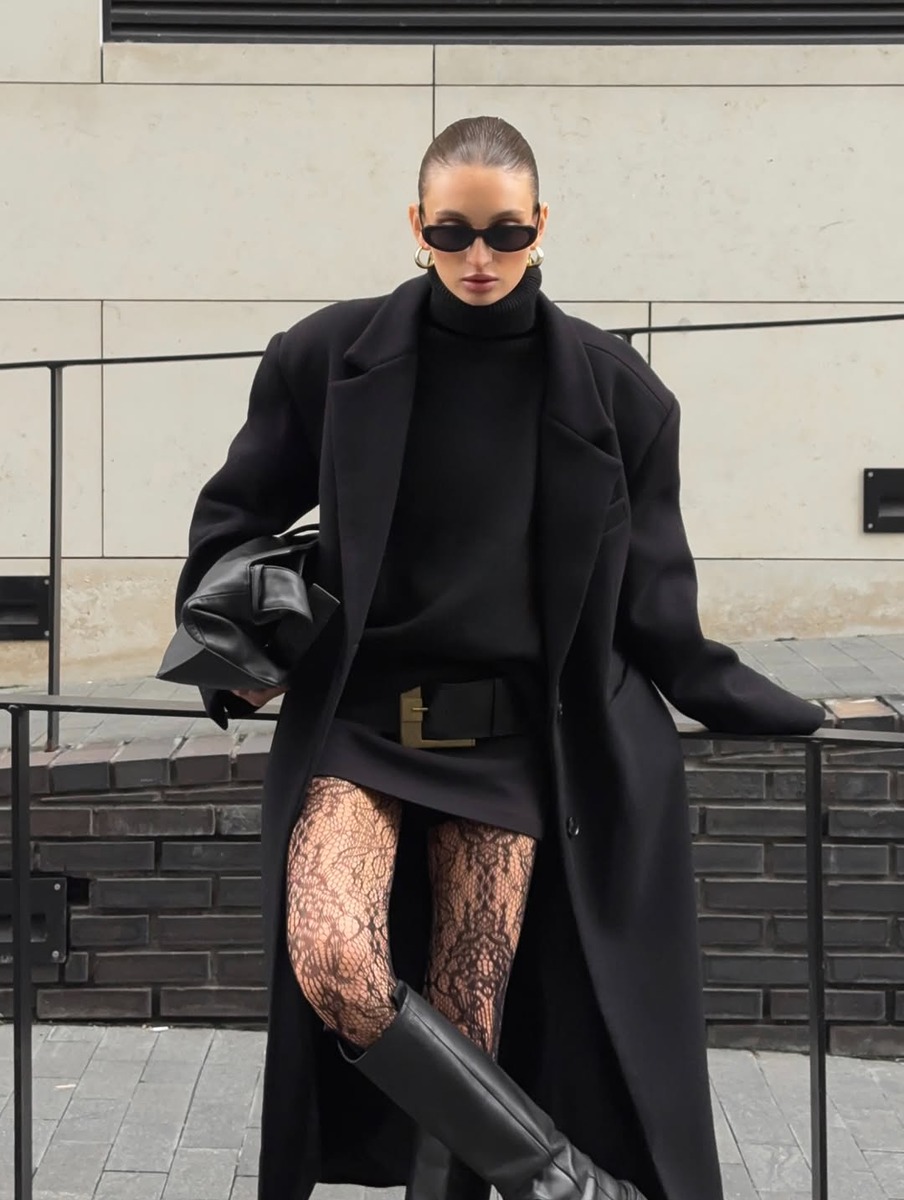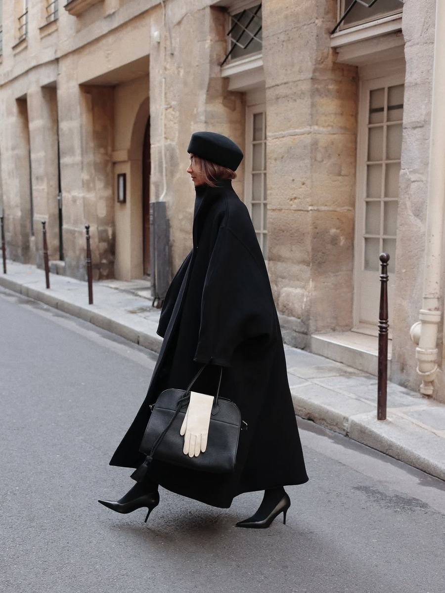 올겨울 올블랙 룩은 단순한 검정색의 나열이 아니에요. 성공적인 올블랙 룩을 완성하려면 실루엣과 소재의 대비감에 집중해야 해요. 롱코트의 길이, 니트의 풍성한 조직감, 오버사이즈 재킷이 주는 세련된 분위기, 퍼 소재가 주는 우아한 볼륨감 등을 적극 활용해야 하죠. 특히 오버사이즈 아우터와 슬림한 이너의 조합은 몸선을 드러내 룩 전체에 긴장감을 부여해요. 퍼 특유의 볼륨감을 활용하면 여성스럽고 우아한 분위기가 완성되죠.