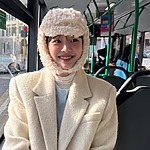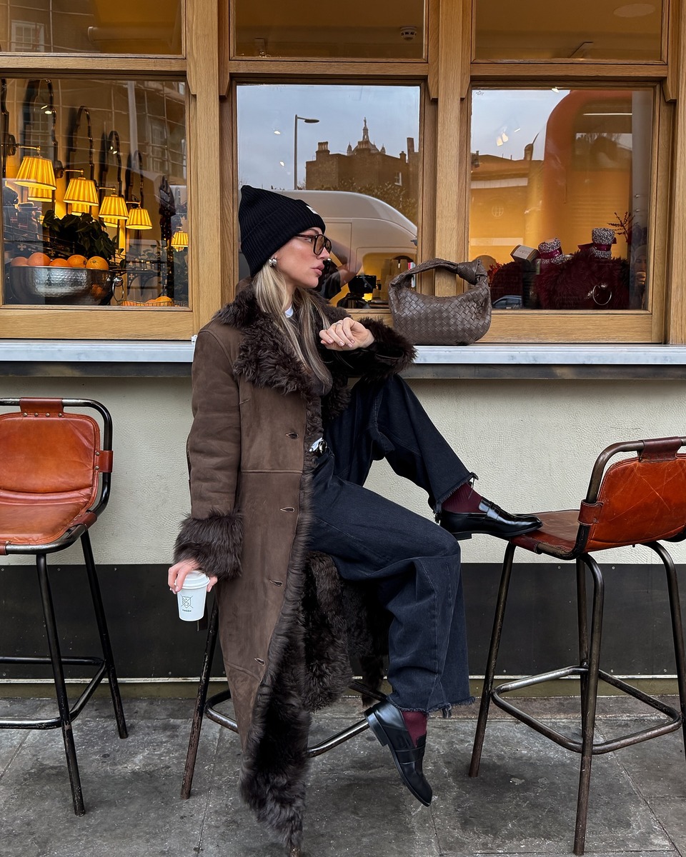 그럼 비교적 깔끔하고 미니멀한 스타일을 선호하는 사람은 트리밍 아우터를 멀리해야 할까요? 정답은 당연히 ‘No’! 김나영처럼 정돈된 시어링 무톤 재킷을 활용하면 좋습니다. 주머니에도 퍼가 가미되어 귀여운 느낌까지 챙겼어요. 짙은 브라운 컬러의 아우터에 화이트 상, 하의 그리고 블랙 스퀘어 토의 슈즈, 가방으로 100점짜리 스타일링을 완성했습니다.