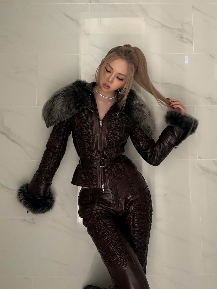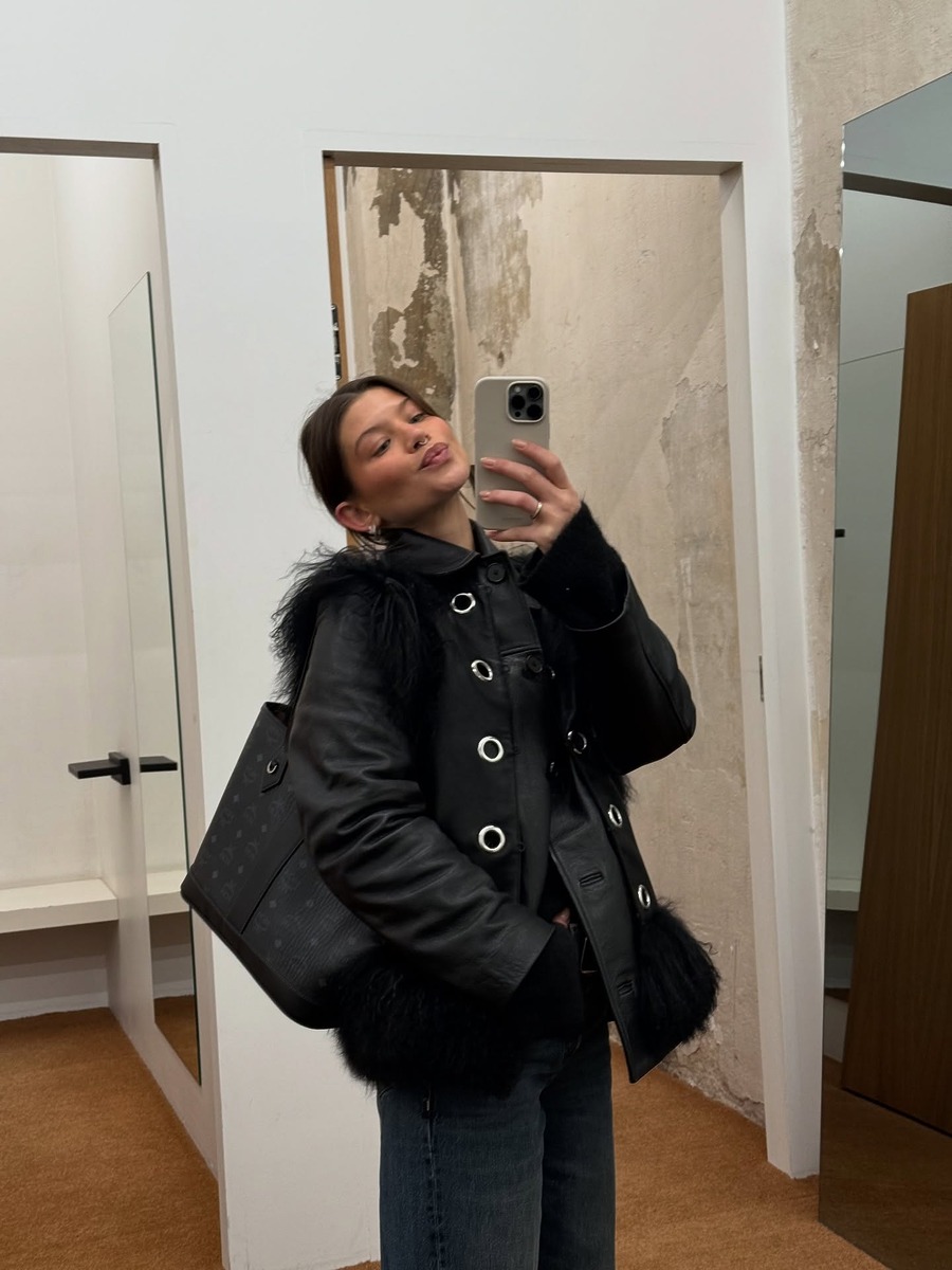 퍼 트리밍 아우터 중에는 강민경이 입은 가죽 재킷처럼 트리밍된 털 길이가 길어 보헤미안 무드를 풍기는 것들이 많은데요, 이런 아우터의 흐름이 바로 메시 걸 트렌드의 영향을 받은 것이라 보는 시각이죠.