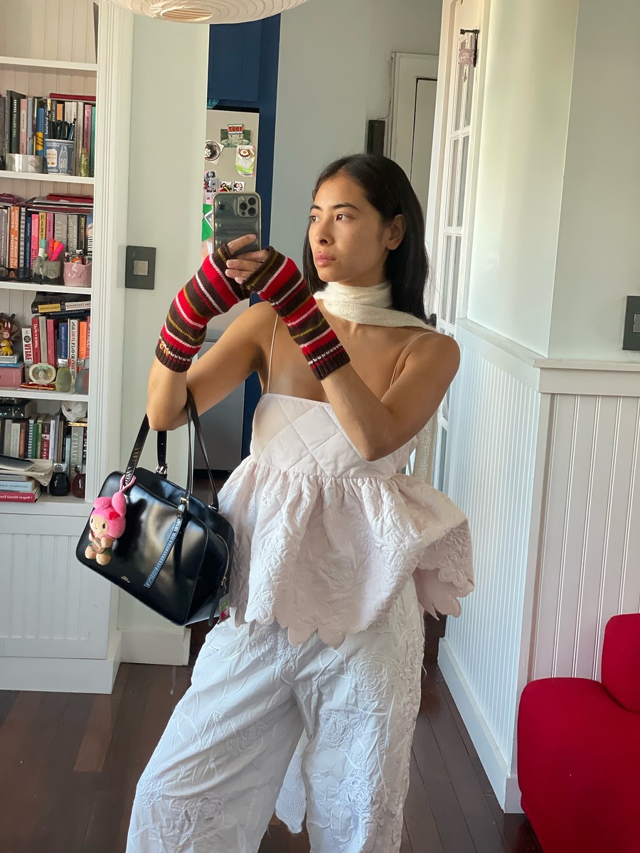 멀티 스트라이프가 처음이라면 작은 아이템부터 시작해 보세요. 비니나 핸드워머처럼 면적이 작은 액세서리에 스트라이프 패턴을 더하면 화려한 컬러 조합도 부담 없이 즐길 수 있어요. 무채색 룩에 포인트로 더하면 전체적인 무드를 헤치지 않으면서도 센스 있는 스타일링이 완성됩니다. 과한 패턴이 망설여진다면 정호연처럼 무채색 기반의 멀티 스트라이프를 선택하는 것도 좋은 방법. 심플한 아우터에 알록달록한 액세서리 하나만 더해도 룩의 생동감이 확 살아날 거예요.