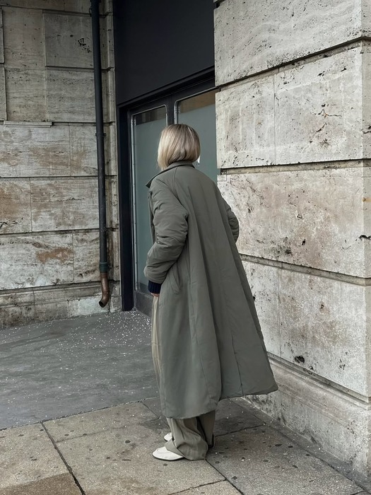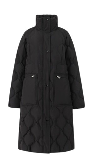 그렇다면 퀼팅이 있는 패딩코트는 어떻게 스타일링할 수 있을까요? 퀼팅이 보이면 아무래도 덜 부해 보이는 장점이 있지만 자칫 올드해 보일 수 있어 미니멀한 룩으로 밀고 나가는 것이 포인트입니다. 아우터의 컬러가 튀지 않게 톤온톤으로 매치하거나 올블랙 룩으로 완성하는 것이 안정적이죠. 퍼 후드가 달린 패딩코트 역시 마찬가지입니다. 너무 많은 액세서리를 하려고 하지 말고 포인트가 될 수 있는 목걸이나 장갑, 가방 정도로 마무리하는 게 좋아요.