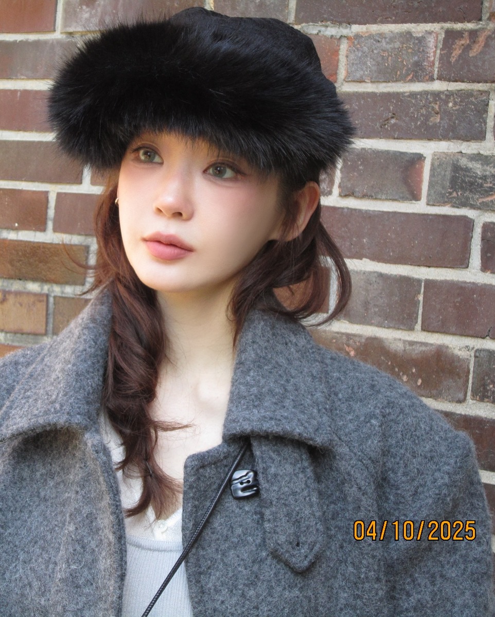 반묶음 외에도 할 수 있는 헤어스타일로는 강민경처럼 머리를 한 쪽으로 모은 뒤 땋아 줘서 늘어 뜨려 청순하면서도 고전적인 느낌을 연출하는 방법도 있습니다. 강민경의 경우는 풍성한 퍼 햇까지 더해 마치 흑백 영화 속 여배우 같은 느낌을 연출했죠.