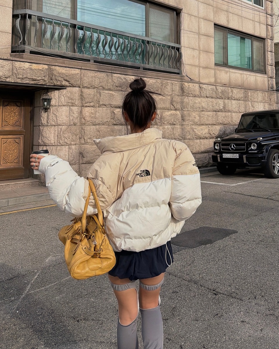 퍼 코트, 패딩 같이 부피가 큰 옷을 입을 때에 머리는 깔끔하게 정리해 주는 쪽이 좋습니다. 특히 목이 올라오는 디자인이라면요. 활동성을 더해주는 건 물론 얼굴도 더 작아 보이죠. 하이넥 디자인일수록, 그리고 아우터의 무드가 활동적일수록 로우번보다는 하이번 스타일이 잘 어울립니다.
