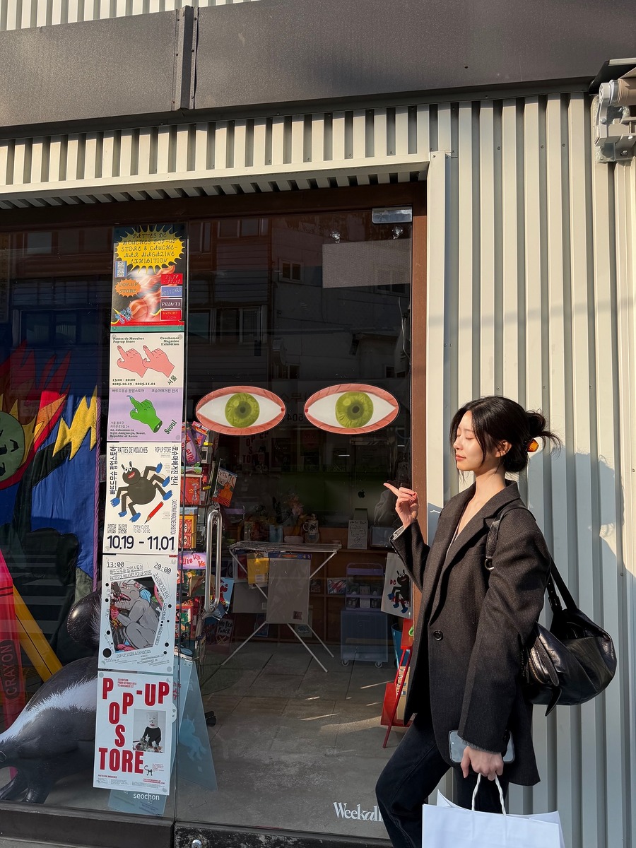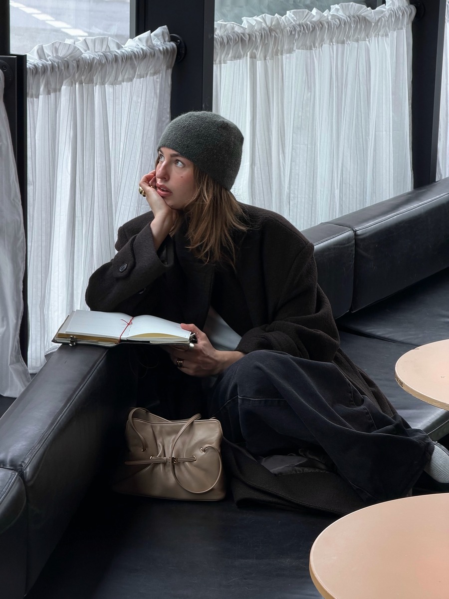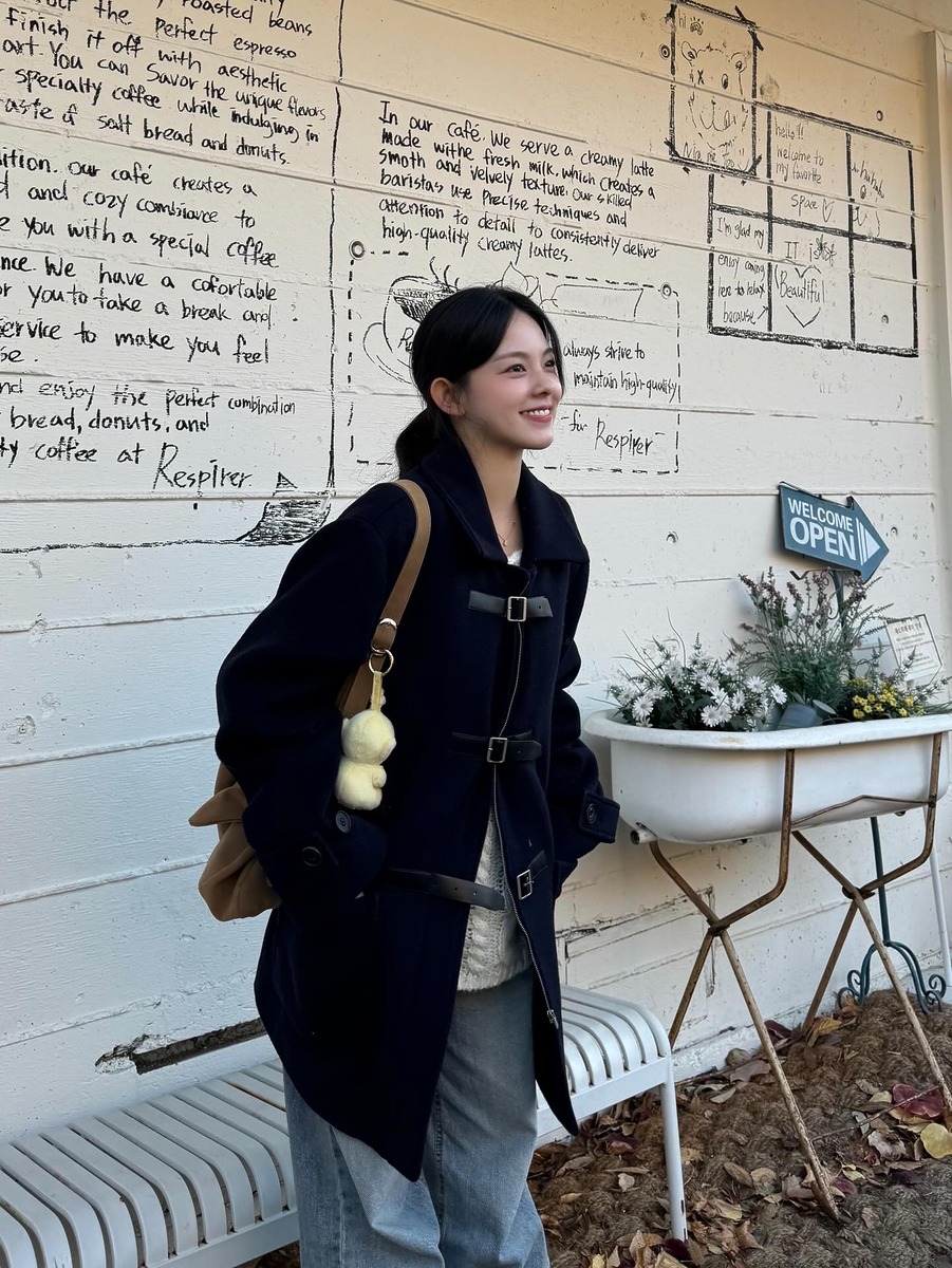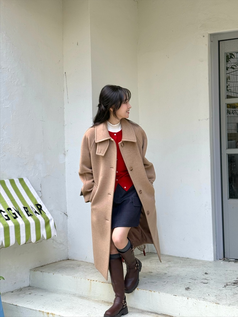 목이 높게 올라오지 않고 깔끔한 카라를 지닌 코트를 입을 때에 반 묶음을 시도해 보세요. 코트 특유의 단정한 느낌은 물론 여성스러운 무드까지 더해줄 수 있어 출근 룩에 활용하기도 좋고 하객룩, 데이트 룩 같은 격식 있는 자리에도 시도하기 좋습니다. 미야오 엘라처럼 머리 전체적으로 컬을 넣어준 다음에 반묶음을 해주면 사랑스러운 느낌을 더욱 강조할 수 있어요.