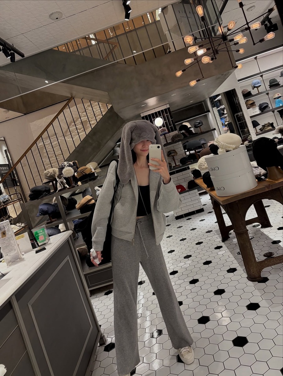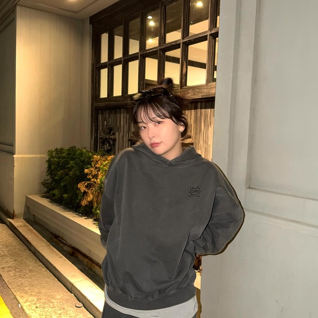 트레이닝 셋업이 없어도 걱정할 필요 없어요. 비슷한 톤의 후디와 트레이닝 팬츠를 매치해 ‘셋업처럼’ 연출하는 것만으로도 충분히 비슷한 효과를 낼 수 있거든요. 박지현은 그레이 톤의 후디와 팬츠를 매치해 자연스러운 스타일링을 연출했습니다. 서로 다른 톤의 상·하의를 자연스럽게 섞으면 셋업 특유의 밋밋함은 사라지고, 세련된 스타일링 효과를 얻을 수 있어요. 상의보다 한 톤 어두운 하의를 선택해 안정적인 실루엣을 완성했죠.