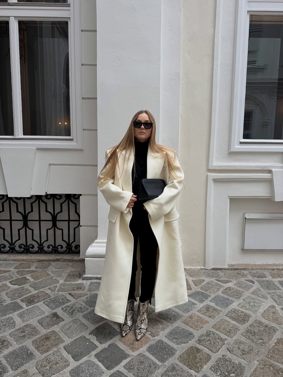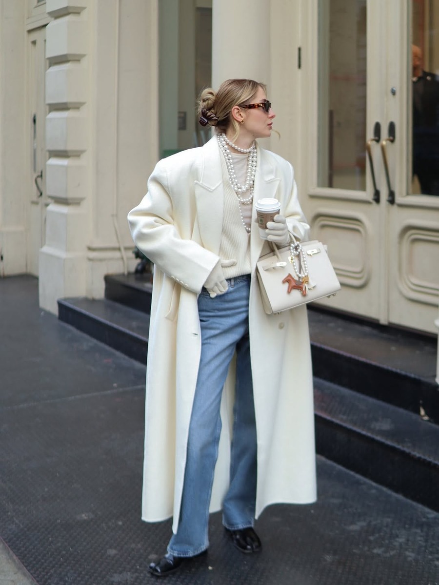 아이보리 혹은 화이트 맥시 코트는 무겁게 가라앉은 겨울 공기 속에서 가장 먼저 시선을 사로잡아요. 채도가 사라진 계절에 빛의 면적을 크게 넓히는 색인만큼 그 어떤 화려한 컬러보다 강렬한 존재감을 발휘하죠. 퓨어한 느낌의 아이보리 맥시 코트는 다양한 이너와 잘 어울려요. 데님 팬츠와 크림 니트 등 밝은 컬러를 층층히 쌓으면 세련된 캐주얼 스타일이, 블랙으로 통일한 이너 위에 맥시 코트를 걸치면 깔끔하고 성숙한 분위기가 완성되죠.