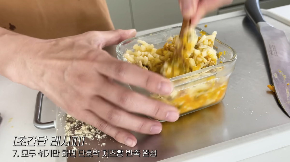 특히 단호박 베이글은 정말 간단합니다. 먼저 단호박을 100g 정도 쪄주고 한 입 크기 정도로 자른 뒤 조금 식혀 줍니다. 단호박이 식을 동안 반죽용 그릇에 계란 한 개와 치즈 1봉지(90g)을 넣어 주세요. 단호박이 조금 식으면 으깨어 준 뒤 치즈와 계란이 담긴 반죽용 그릇에 넣어 줍니다. 여기에 아몬드 가루 다섯 스푼(밥 숟가락 사이즈 입니다), 알룰로오스 세 스푼을 넣고 잘 섞어 주면 반죽 완성!