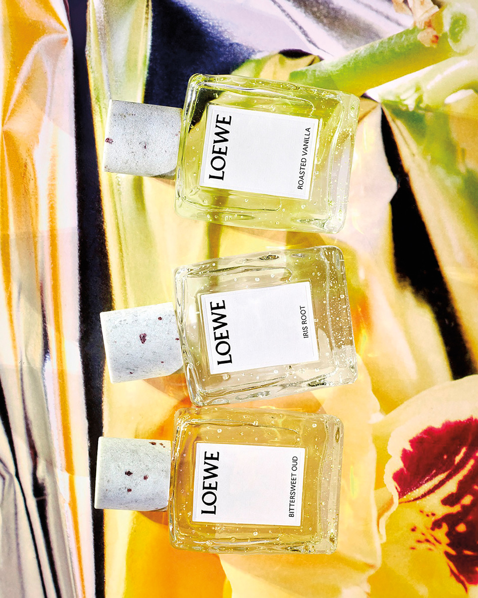 로에베 퍼퓸의 ‘크래프티드 컬렉션’은 장인이 입으로 불어 만든 ‘핸드블로운 글라스’에서 영감 받은 것이 특징. 자연스럽게 형성된 기포를 살린 유리 플라스크에 화강암으로 마무리한 뚜껑으로 로에베 특유의 조형미와 장인정신을 담았다. 향기는 ‘비터스위트 오우드’, ‘로스티드 바닐라’, ‘아이리스 루트’의 향으로 만날 수 있다.
