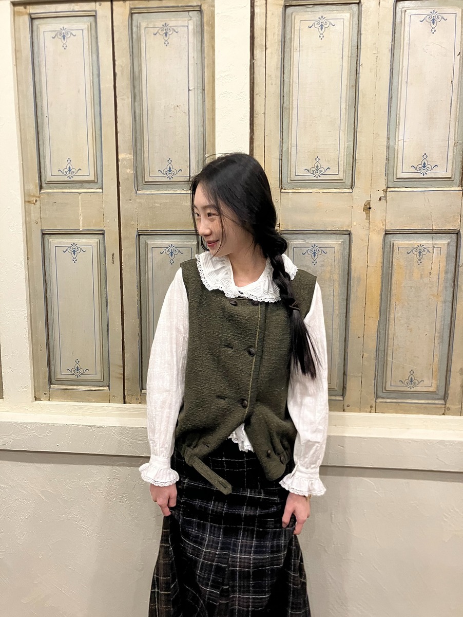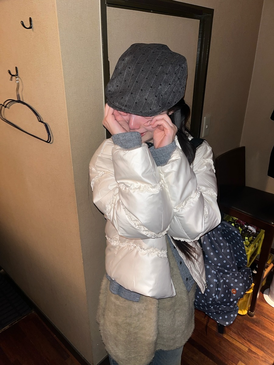 일본 모델 느낌 낭낭한 영서는 외모만큼이나 데일리룩도 사랑스럽죠. 동화 속 소녀 같은 화이트 러플 블라우스에 니트, 타탄체크 스커트를 매치해 그녀만의 분위기를 완성했어요. 패딩을 입을 때도 귀여움은 놓치지 않아요. 아기자기한 프릴 디테일의 화이트 패딩에 도트 백팩으로 연출한 여행 룩을 눈여겨보세요.