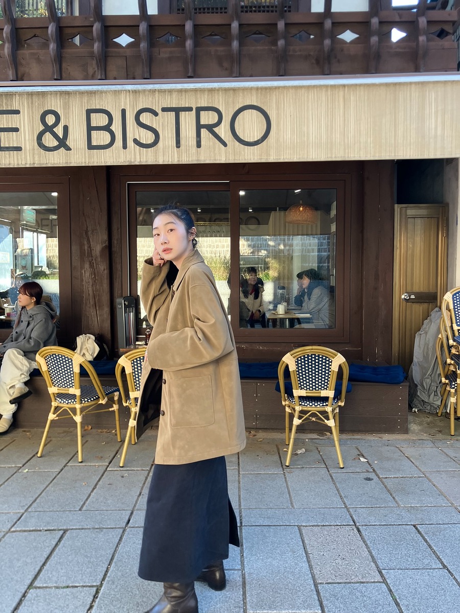 미디 길이의 코트와 재킷, 발목을 덮는 롱스커트, 부츠와 로퍼는 영서의 데일리 룩에서 빠질 수 없는 아이템. 특히 한 사이즈 큰 옷을 입은 듯한 오버사이즈 핏 아우터와 차분한 무드의 롱스커트를 매치한 룩은 영서의 시그니처 스타일입니다.
