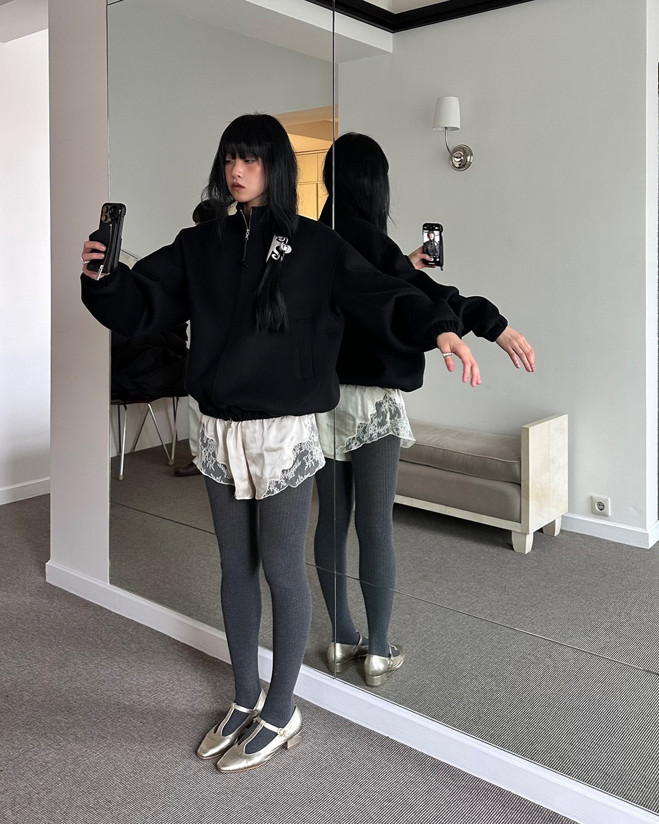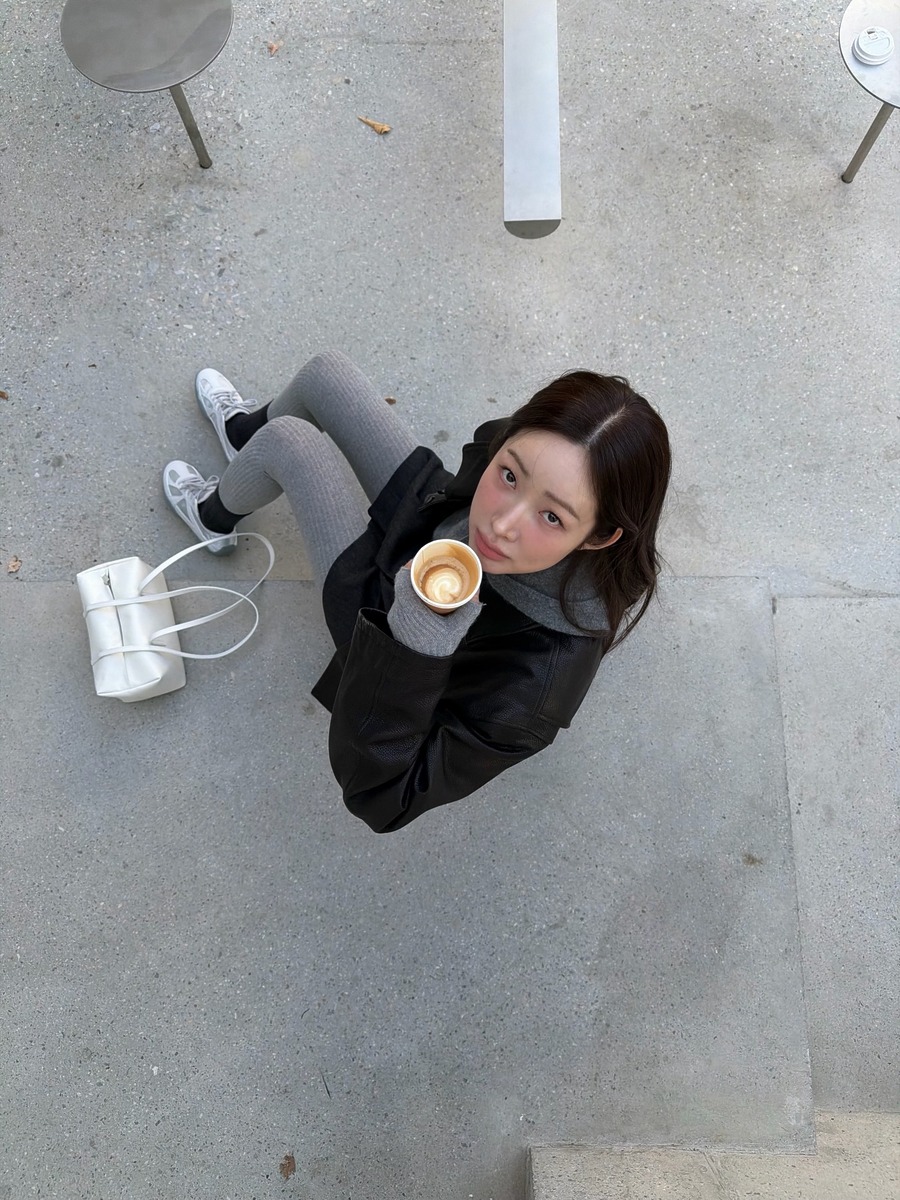 데일리 룩 장인인 차정원의 가을 & 겨울 패션에 빠지지 않는 아이템이 바로 회색 스타킹이죠. 그녀는 이 아이템을 하나만 신기 보다는 목이 긴 양말과 레이어링해서 착용하는 경우가 많습니다. 골지가 들어간 스타킹을 신었을 때에 함께 매치하는 양말은 심플한 것으로 고르는 세심함도 엿볼 수 있어요.