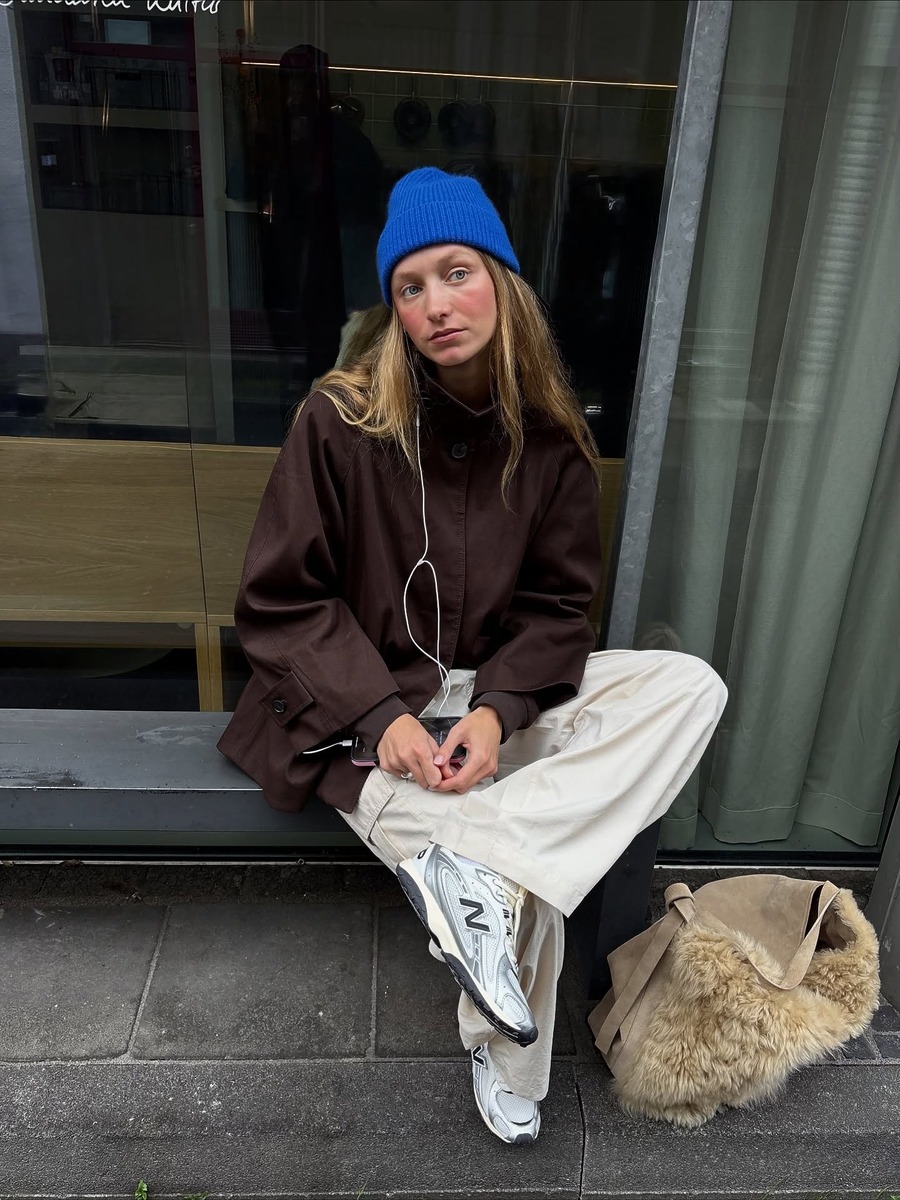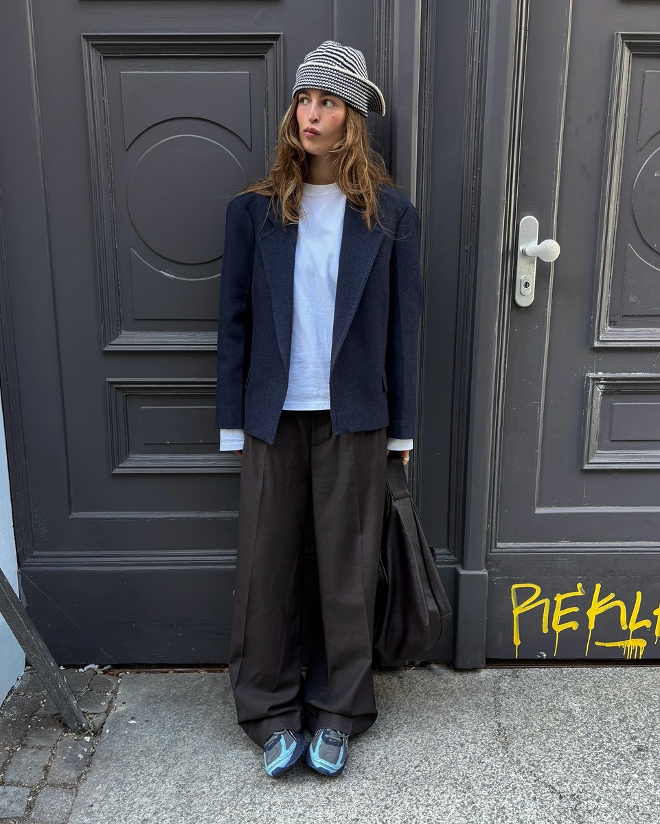 길이가 짧고 두상을 감싸 얼굴을 더욱 작아 보이게 만드는 일명 ‘골무핏’ 비니는 기본 중의 기본이죠. 얇은 니트 소재로 된 무채색 비니는 깔별로 소장해도 좋아요. 와이드 팬츠와 오버사이즈 코트를 입고 무심한 듯 멋스럽게 비니를 착용해 보세요. 제니처럼 크게 로고로 포인트 준 스타일도 추천해요.